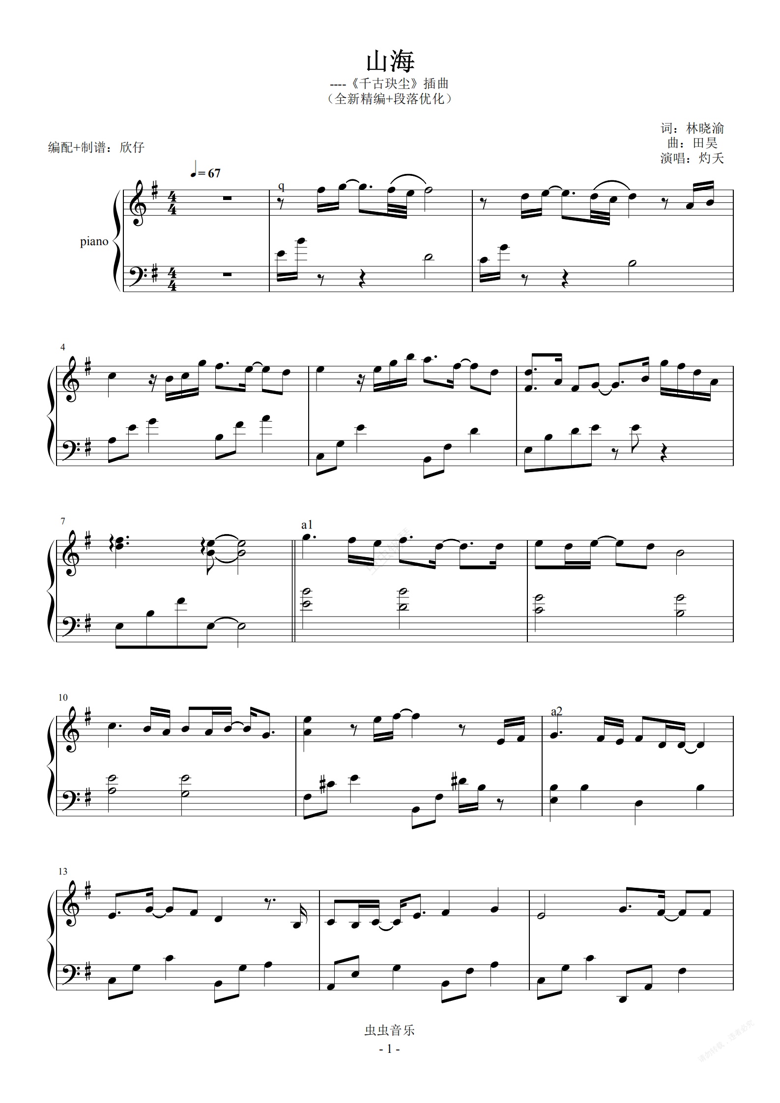 鋼琴譜:灼夭-G《山海》(《千古玦塵》插曲、全新精編+段落優(yōu)化)