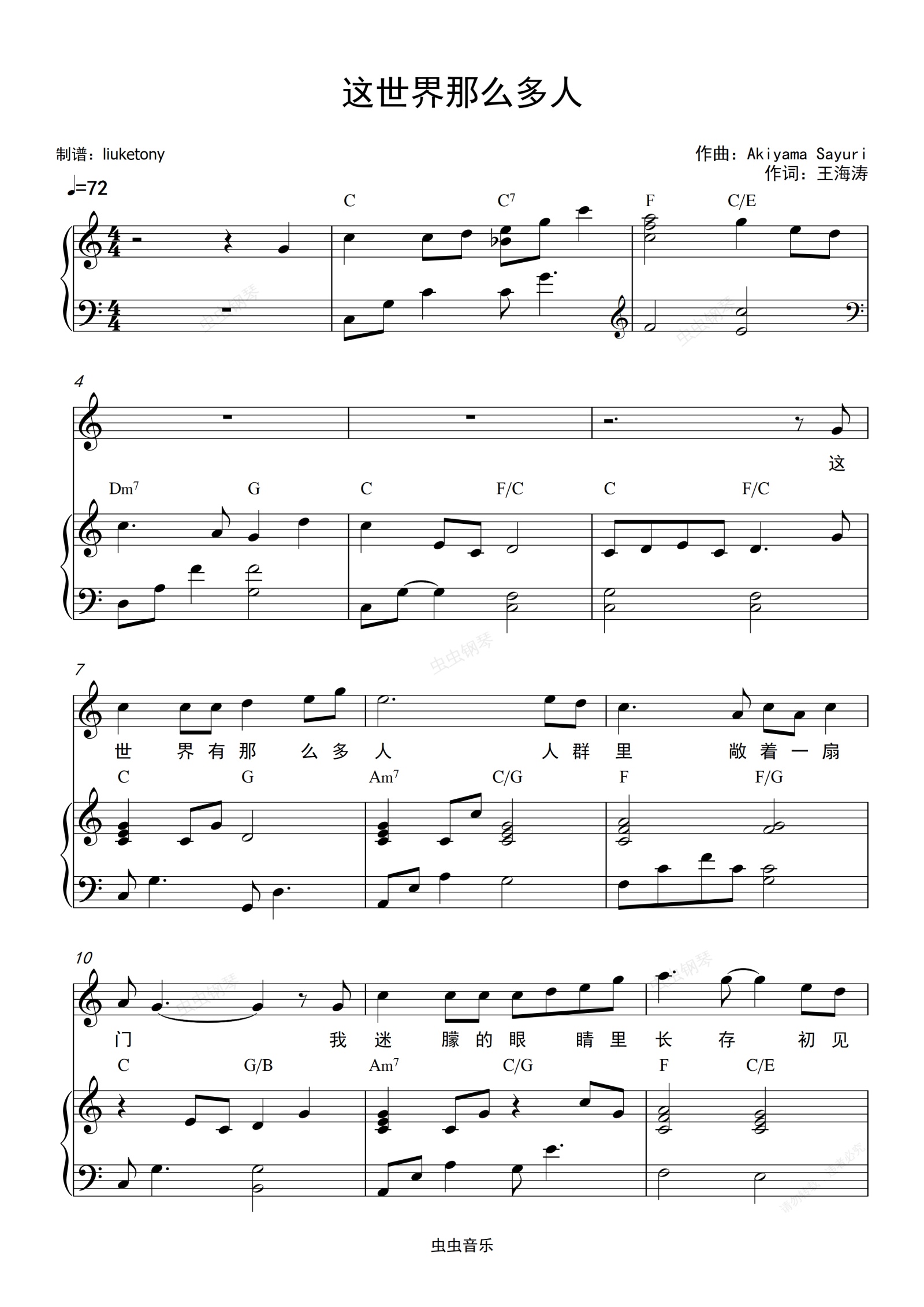 您的位置: 首頁 > 鋼琴譜庫 > 這世界那么多人 彈唱版C調