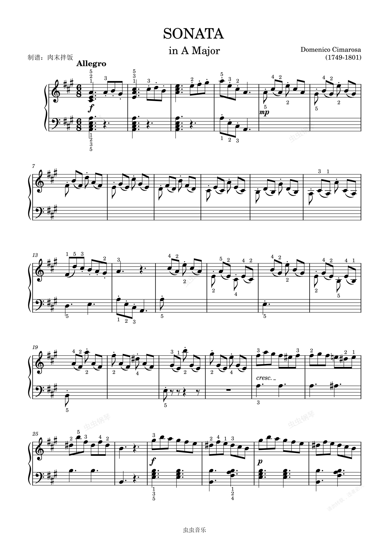 鋼琴譜:A大調小奏鳴曲(SONATA)-多梅尼科·契瑪羅薩(Domenico Cimarosa)
