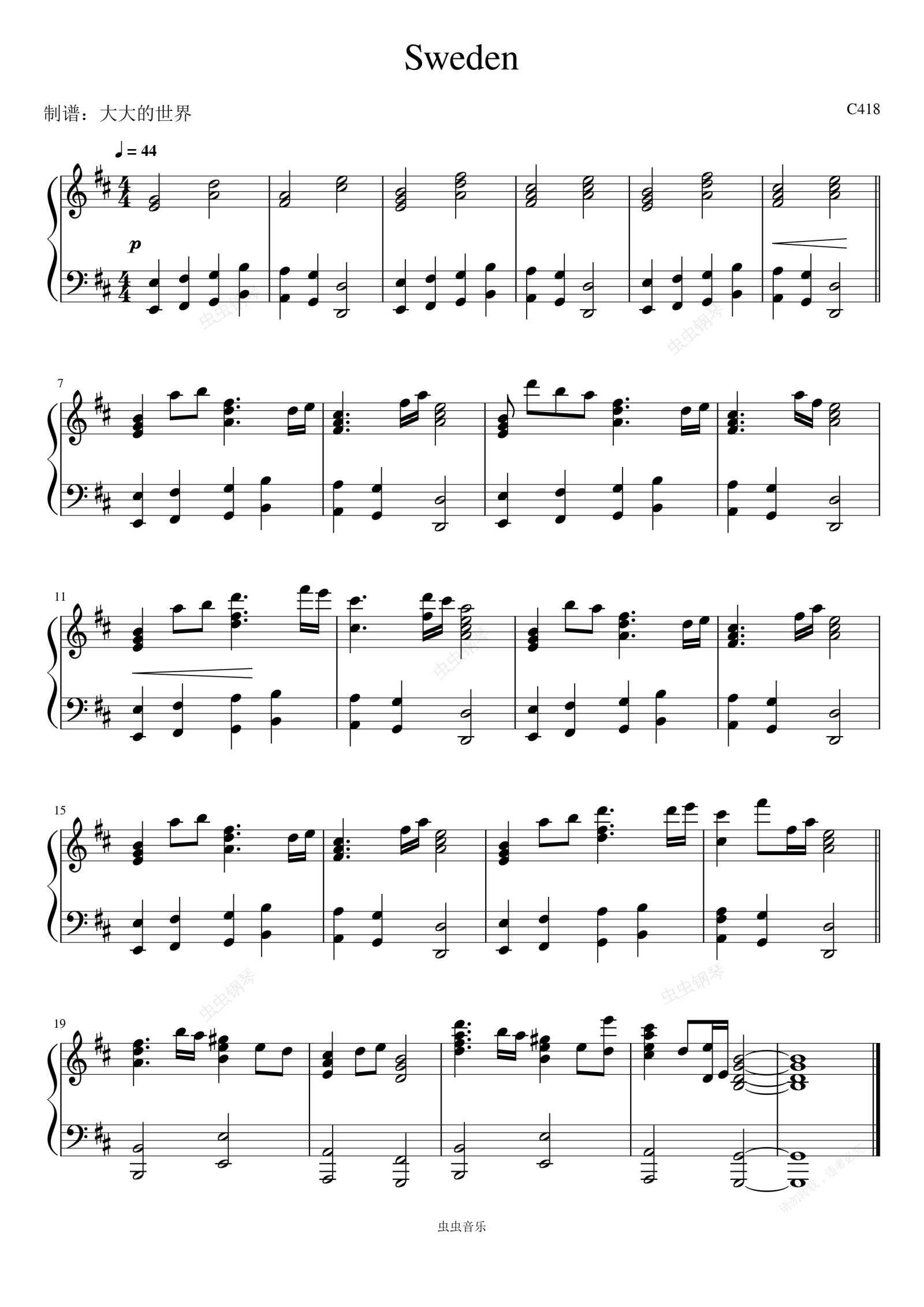 鋼琴譜:Sweden( C418)