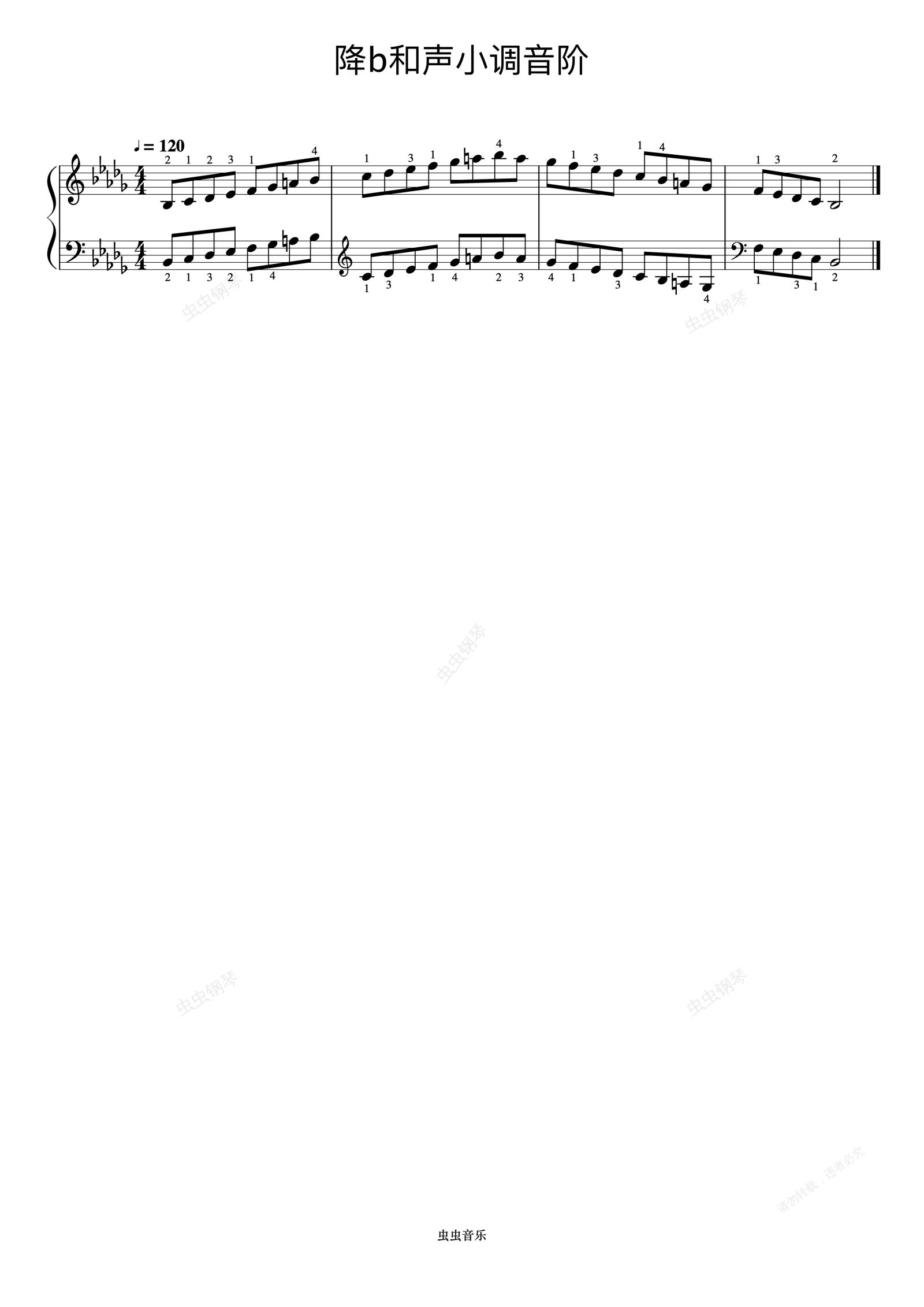 鋼琴譜:哈農 No.33-32 降b和聲小調音階