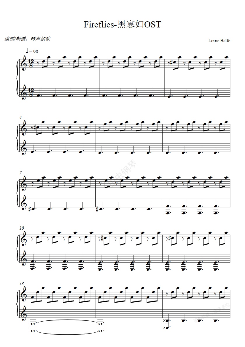 鋼琴譜:黑寡婦OST-Fireflies 【令人著迷的純音樂】
