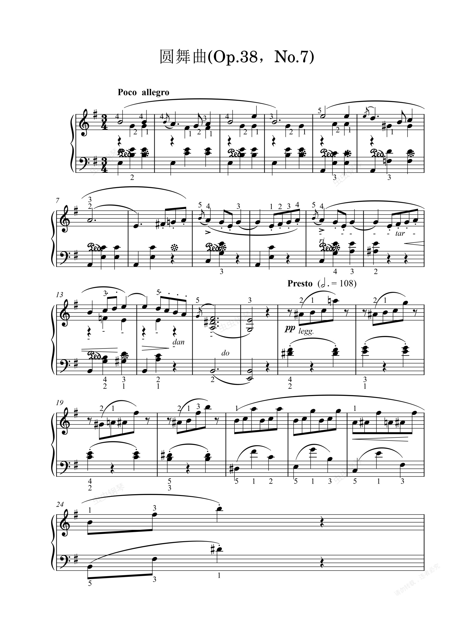鋼琴譜:圓舞曲(Op.38,No.7)