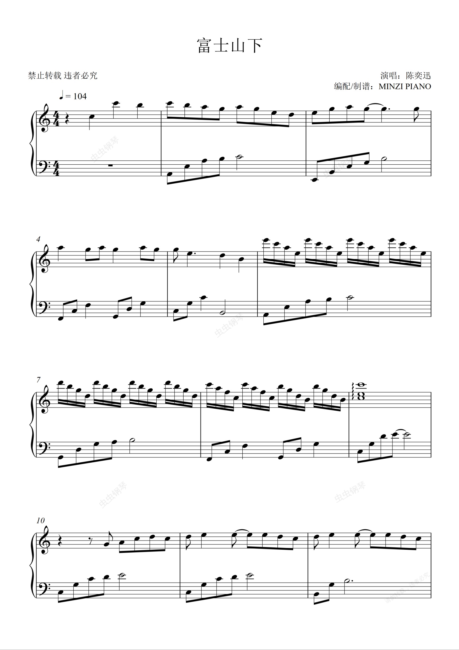 鋼琴譜:陳奕迅《富士山下》好聽易彈奏