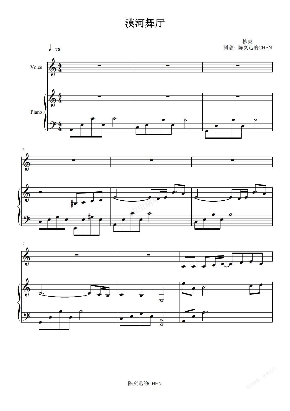 鋼琴譜:漠河舞廳C調彈唱譜【簡單好聽】