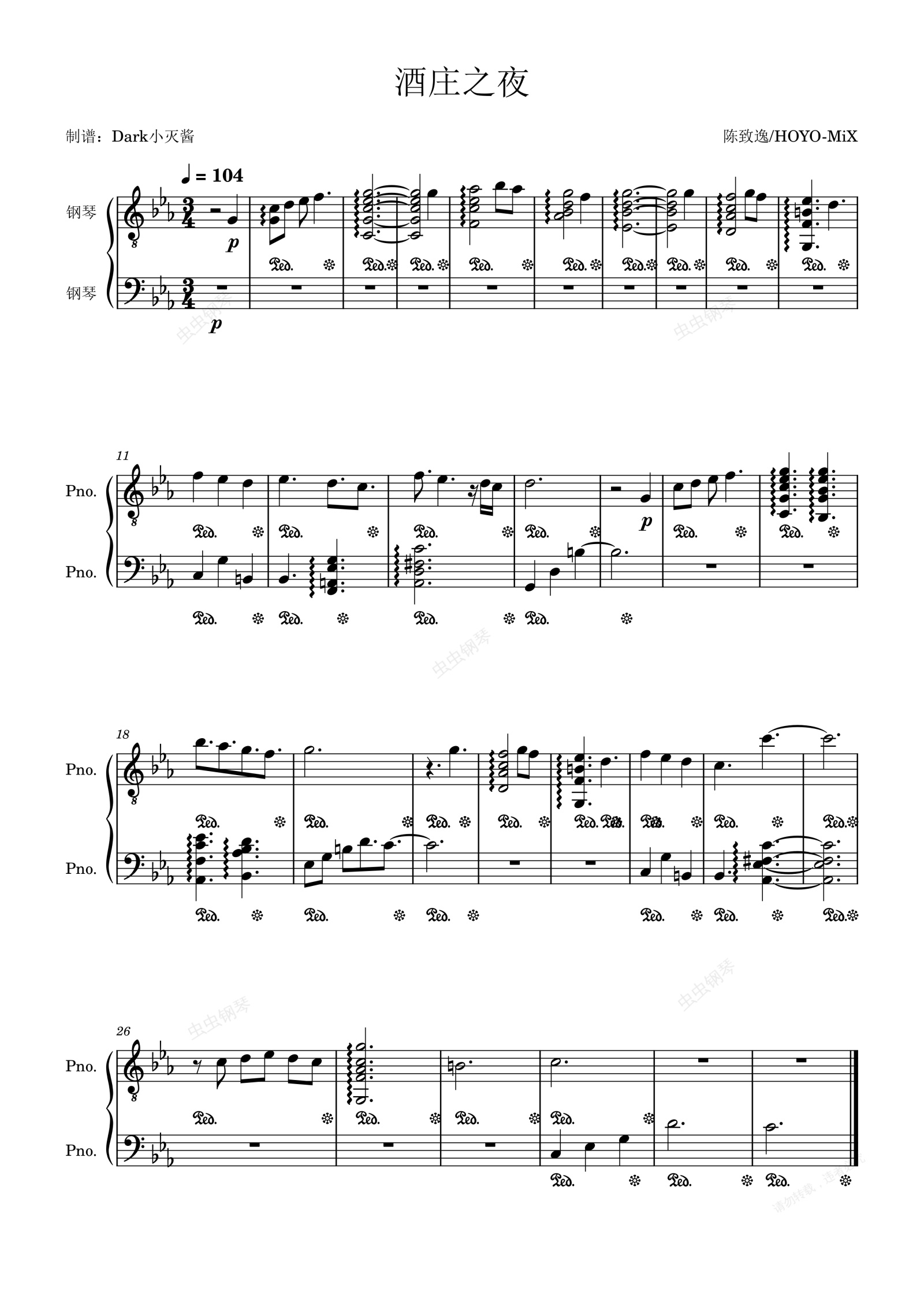 鋼琴譜:【原神·蒙德】酒莊之夜