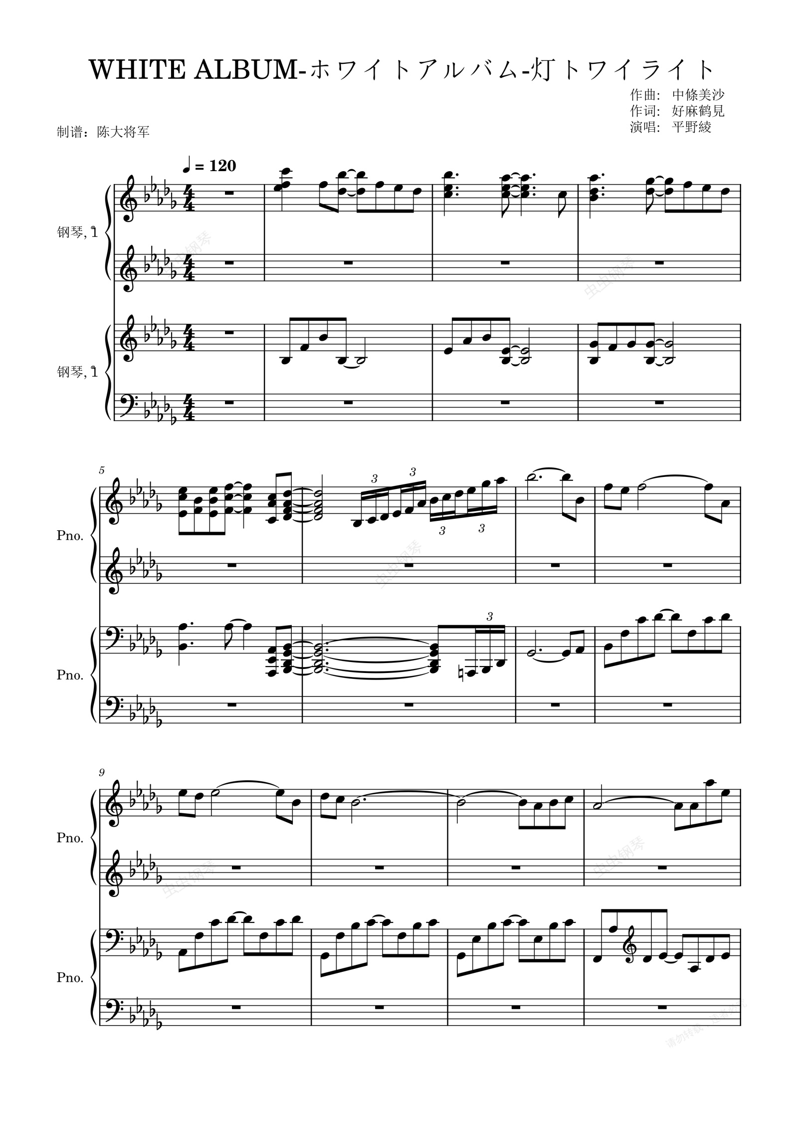 鋼琴譜:WHITE ALBUM-ホワイトアルバム-燈トワイライト