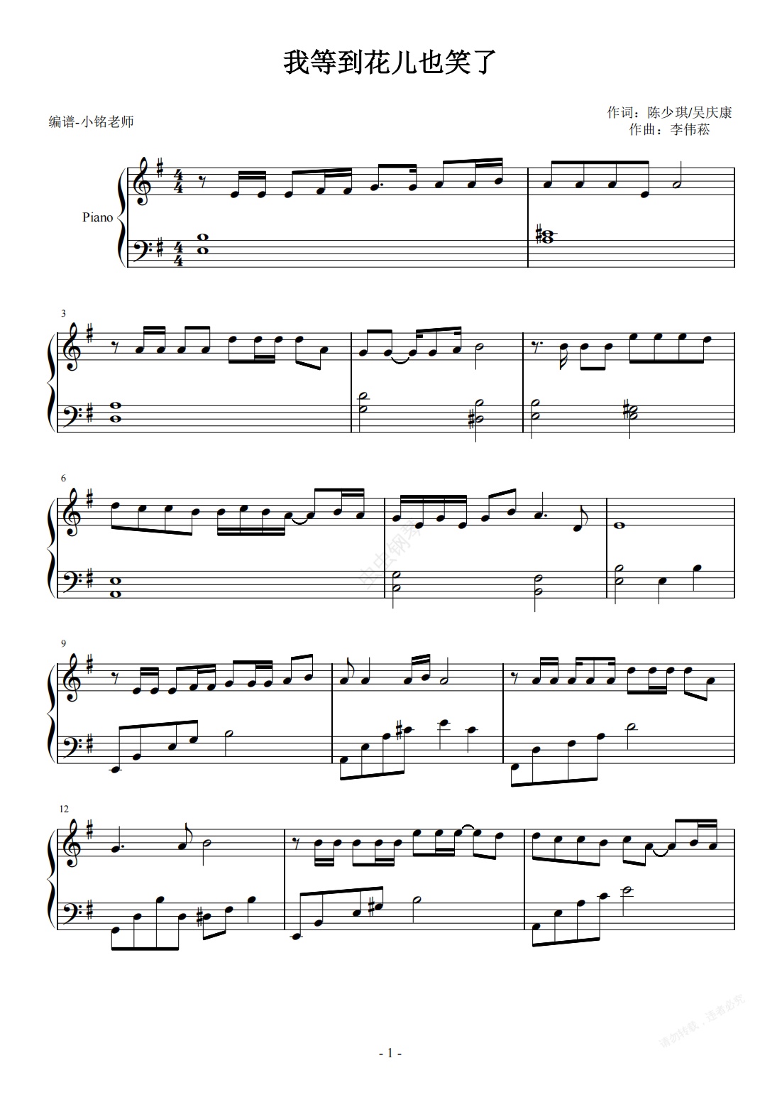 鋼琴譜:我等到花兒也謝了 【簡易 懷舊】