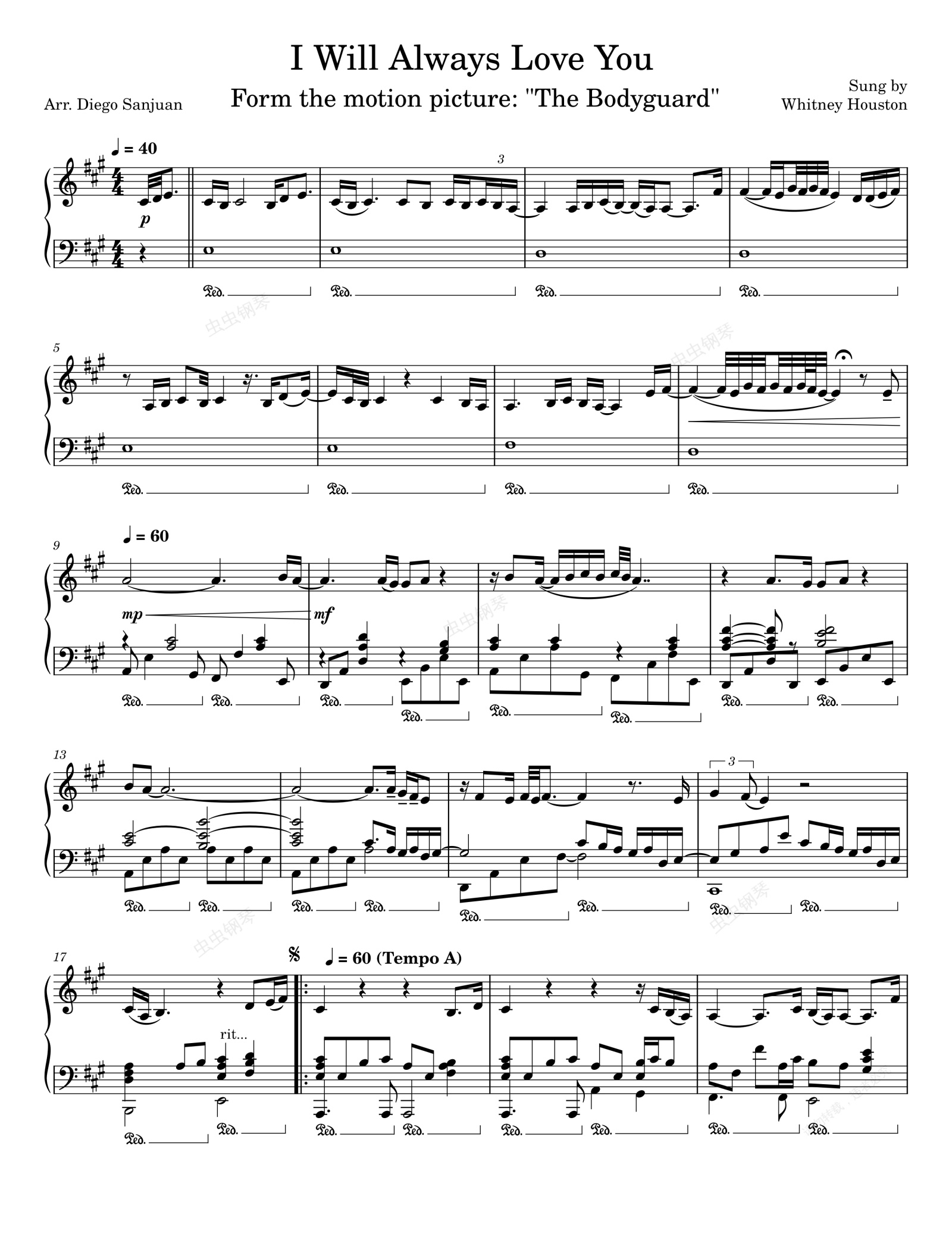 鋼琴譜:惠特妮·休斯頓 Whitney Houston-I Will Always Love You