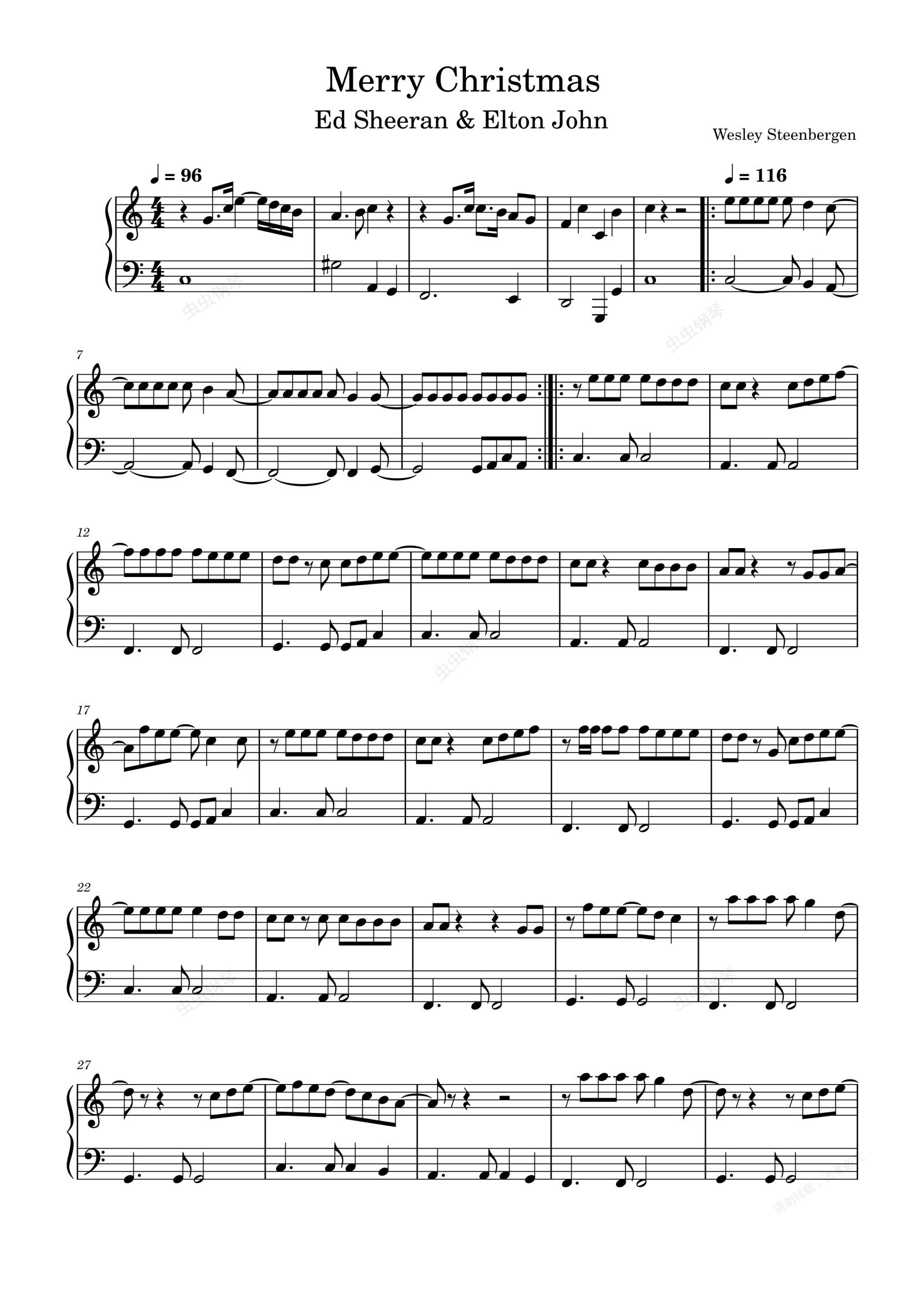 鋼琴譜:Merry Christmas-Ed Sheeran / Elton John