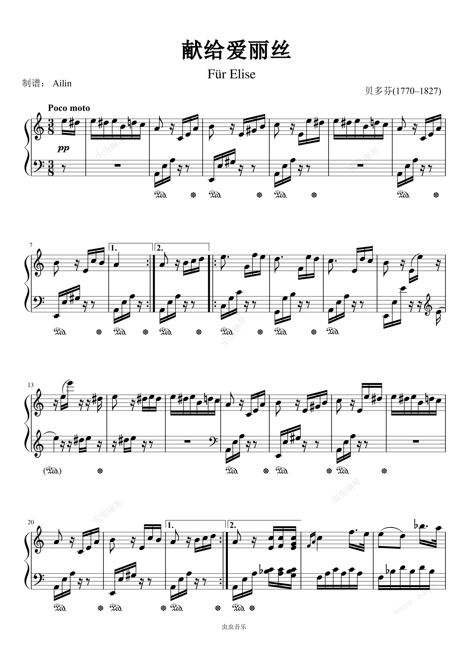獻給愛麗絲【原版】貝多芬 Für Elise 致愛麗絲 a小調巴加泰勒 For Elise Ludwig van Beethoven