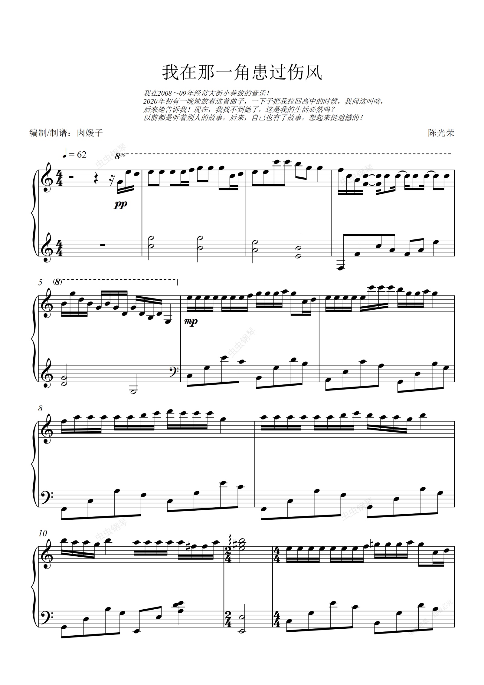 鋼琴譜:我在那一角患過傷風 【超好聽經典鋼琴曲目】