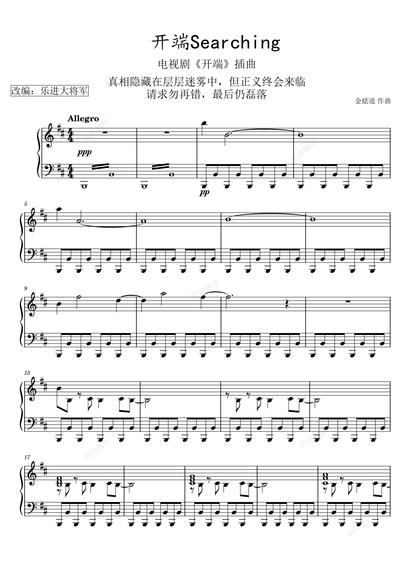 鋼琴譜:完整版電視劇《開(kāi)端》插曲Searching(調(diào)查中)