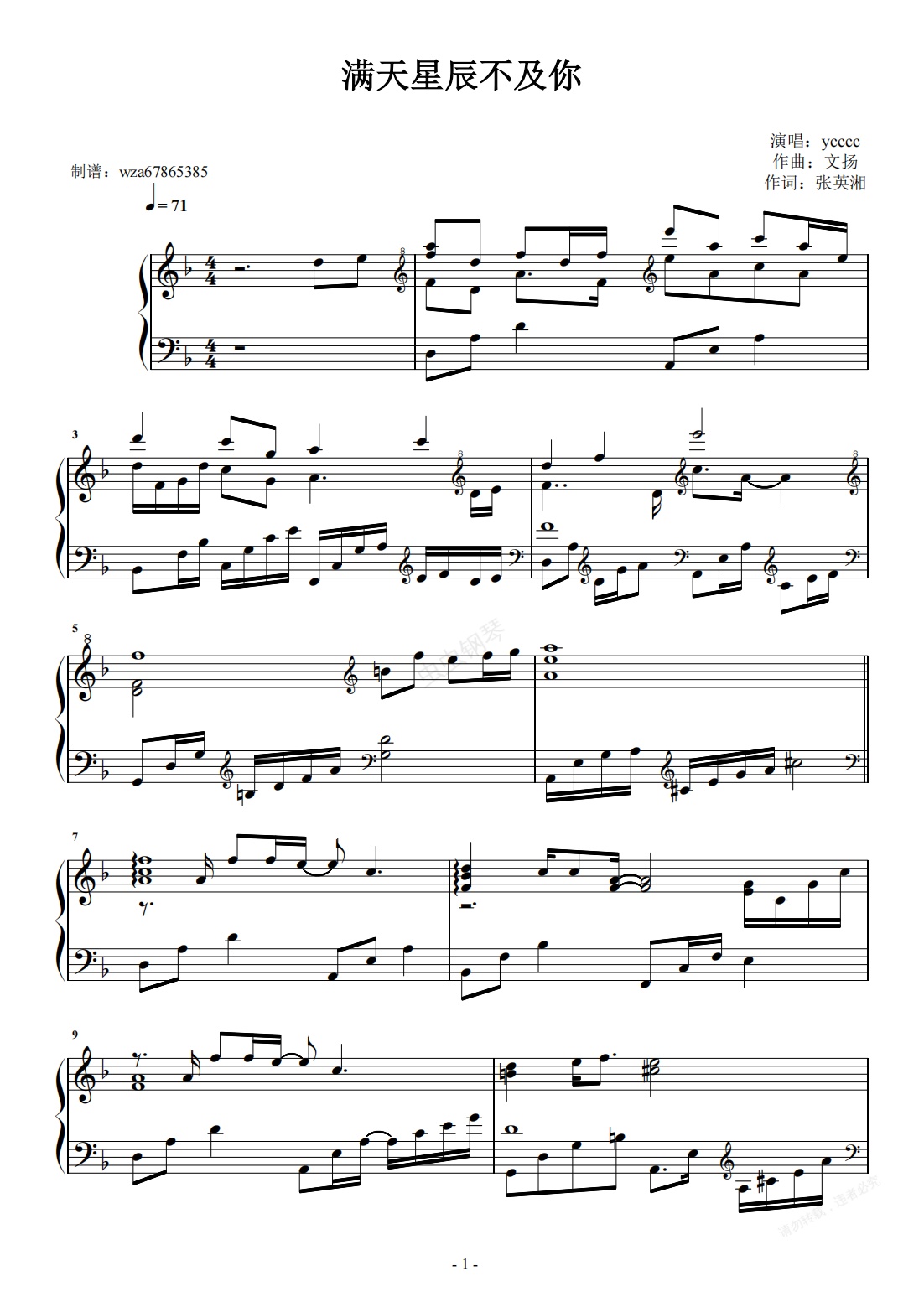 您的位置: 首頁 > 鋼琴譜庫 > 滿天星辰不及你鋼琴譜-ycccc