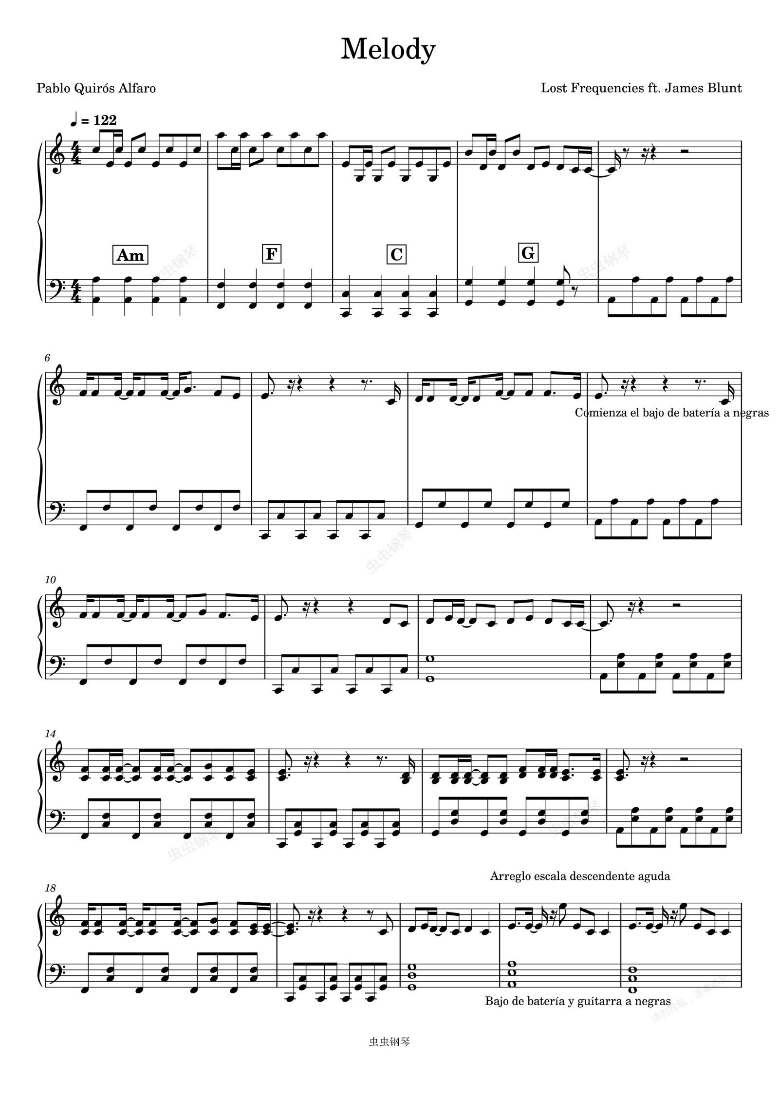 鋼琴譜:Melody-Lost Frequencies / James Blunt
