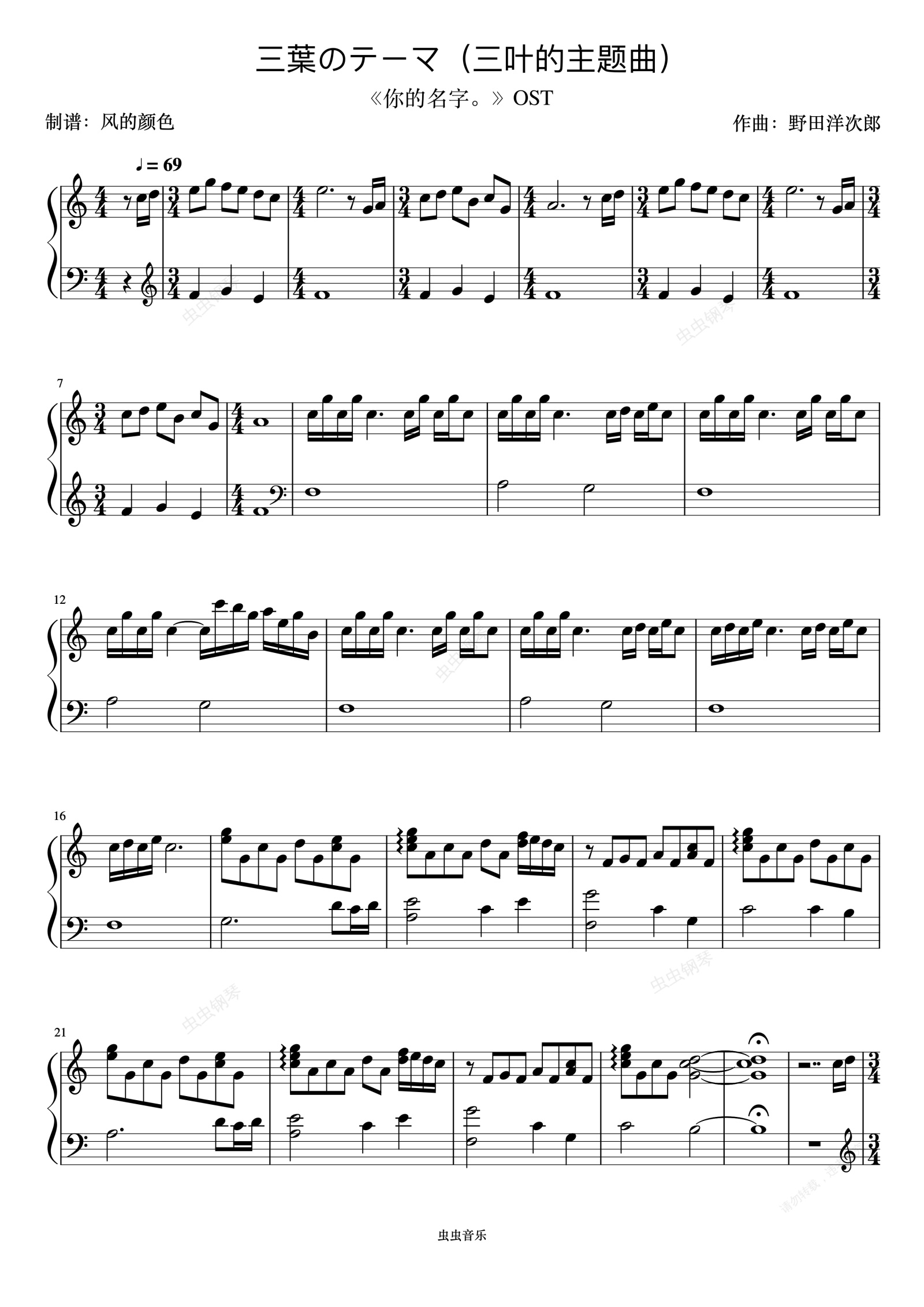 鋼琴譜:三葉のテーマ/Mitsuha No Theme - Your Name | 你的名字