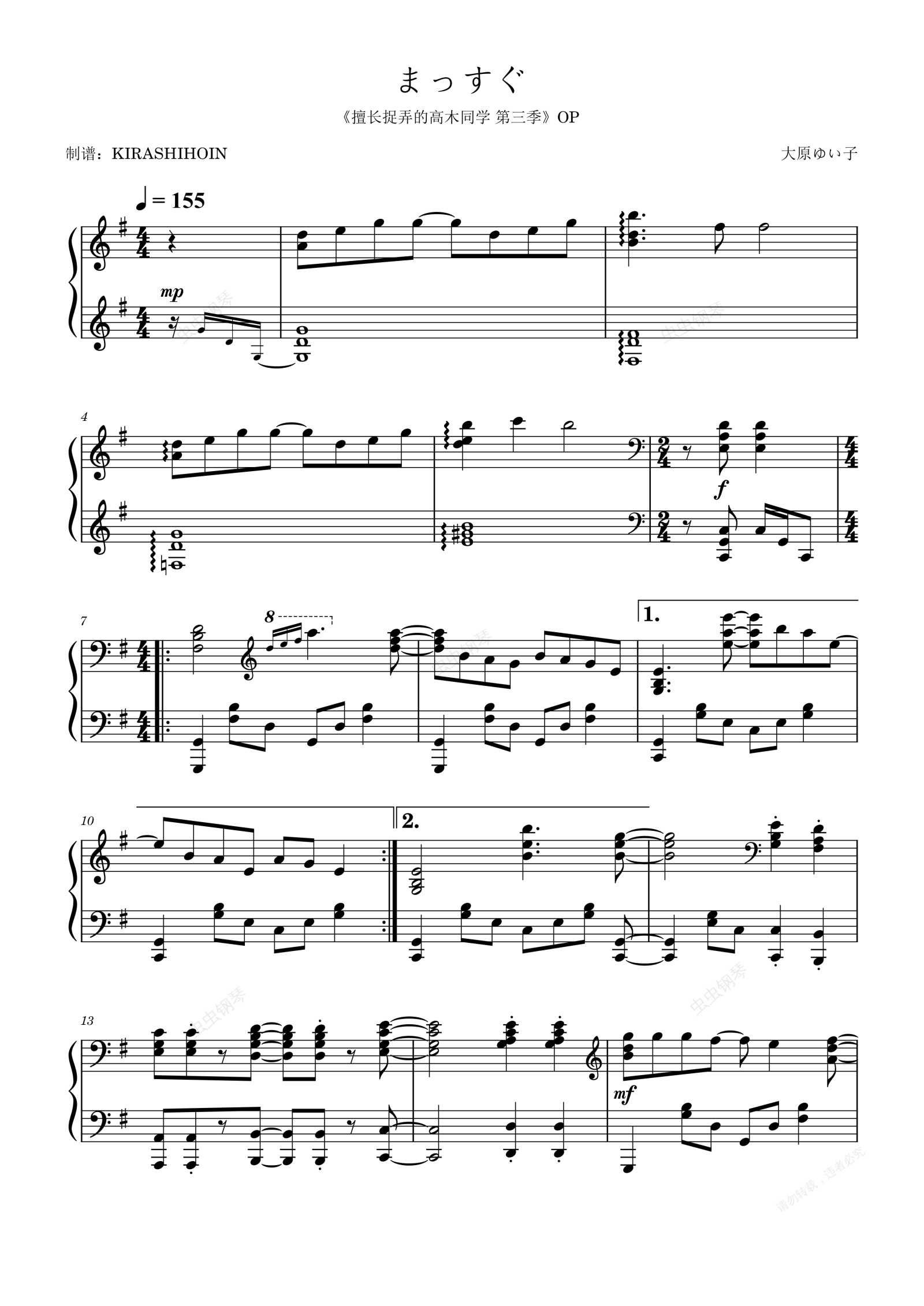 鋼琴譜:まっすぐ(《擅長捉弄的高木同學 第三季》OP/片頭曲)- 大原ゆい子