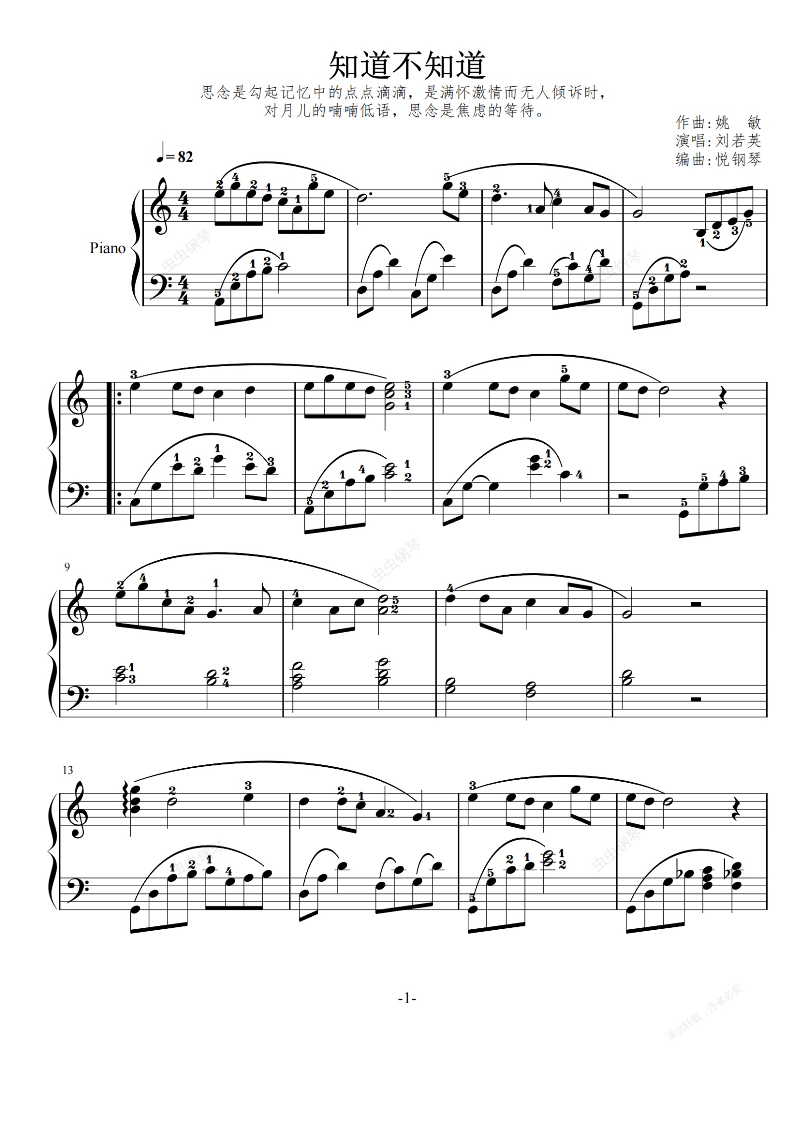 鋼琴譜:知道不知道 劉若英版