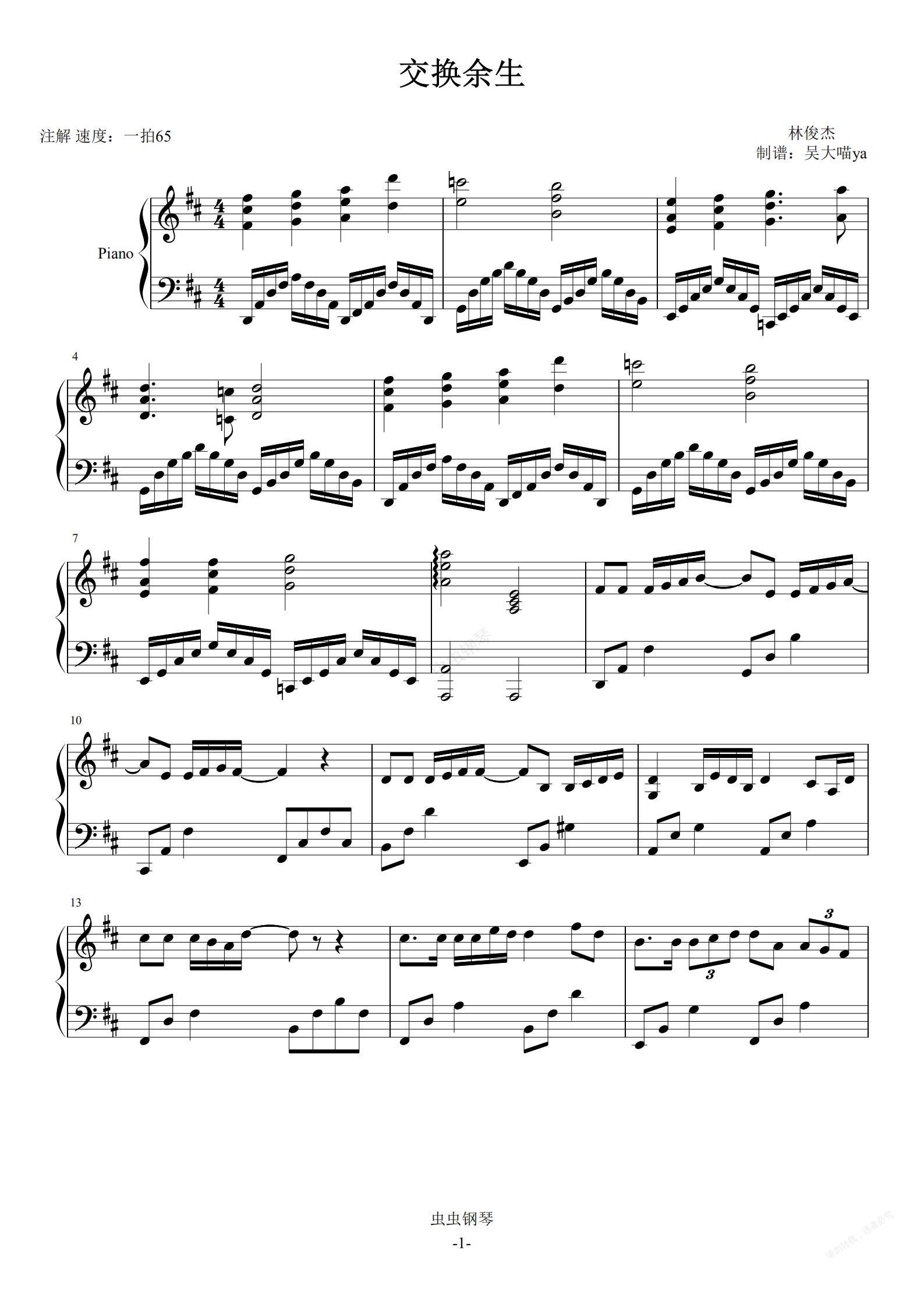 鋼琴譜:交換余生