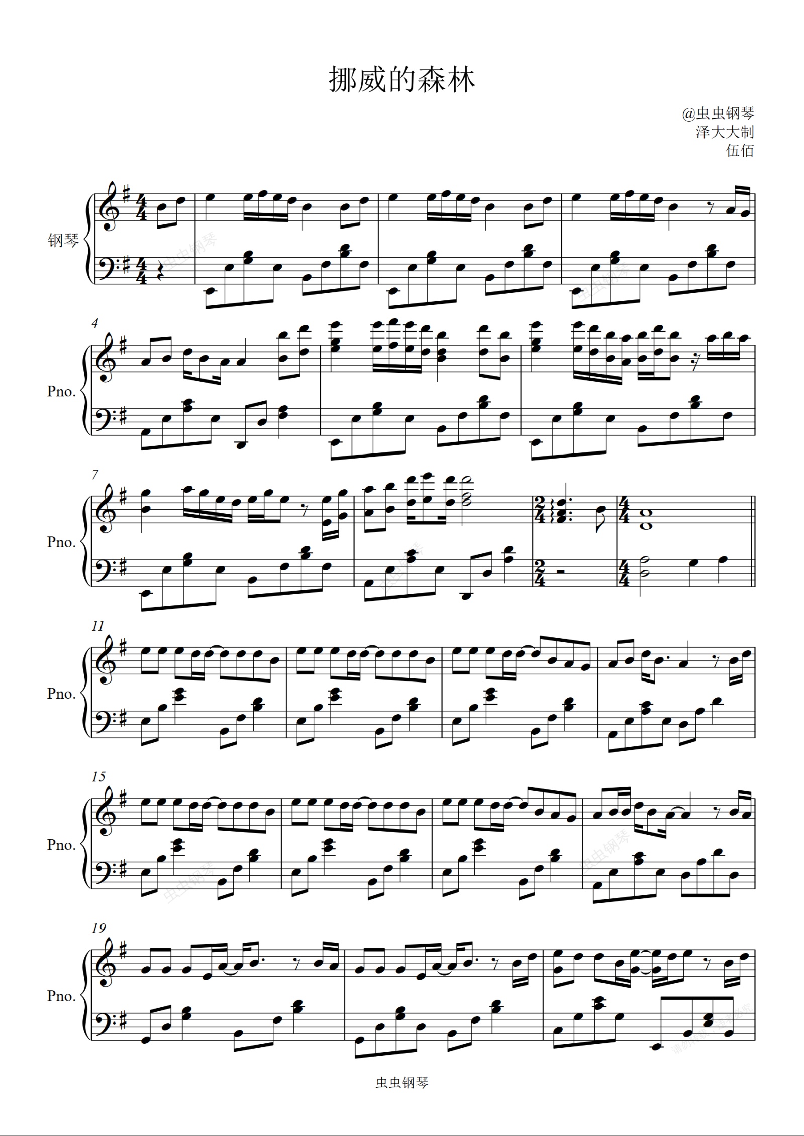 鋼琴譜:挪威的森林【完美獨(dú)奏版】澤大大 伍佰