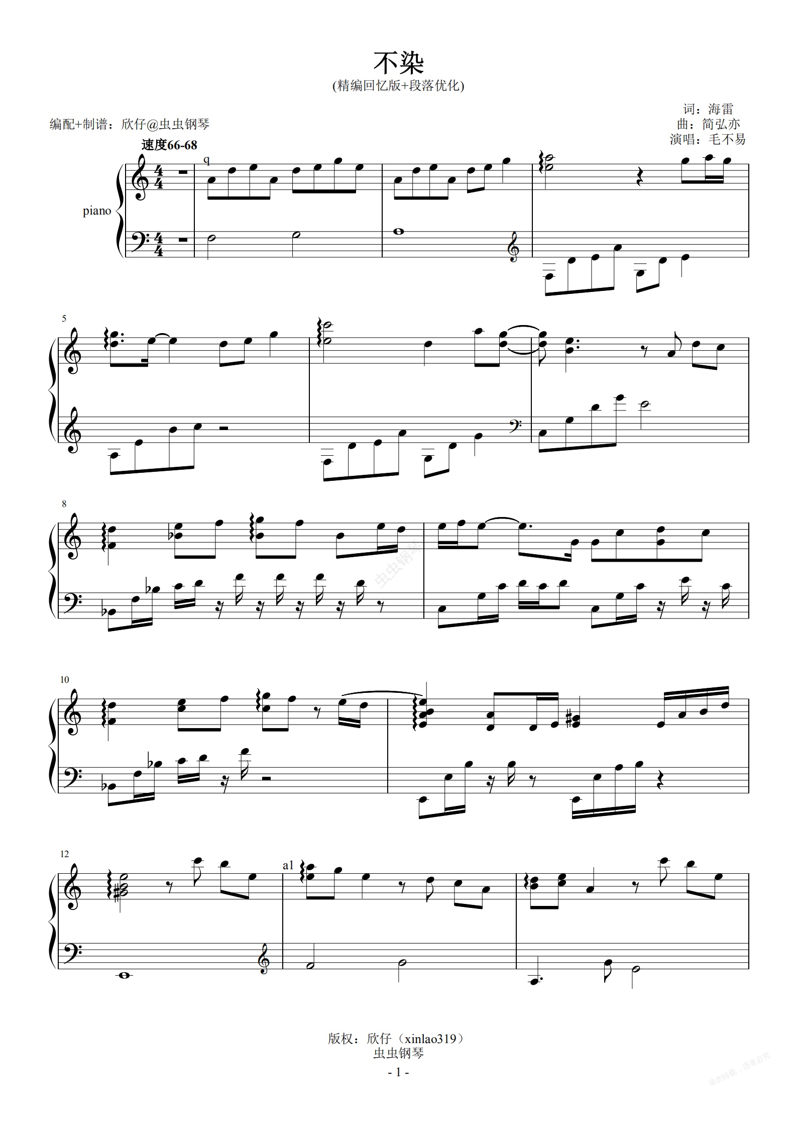 鋼琴譜:毛不易-C《不染》(精編回憶版+段落優化)