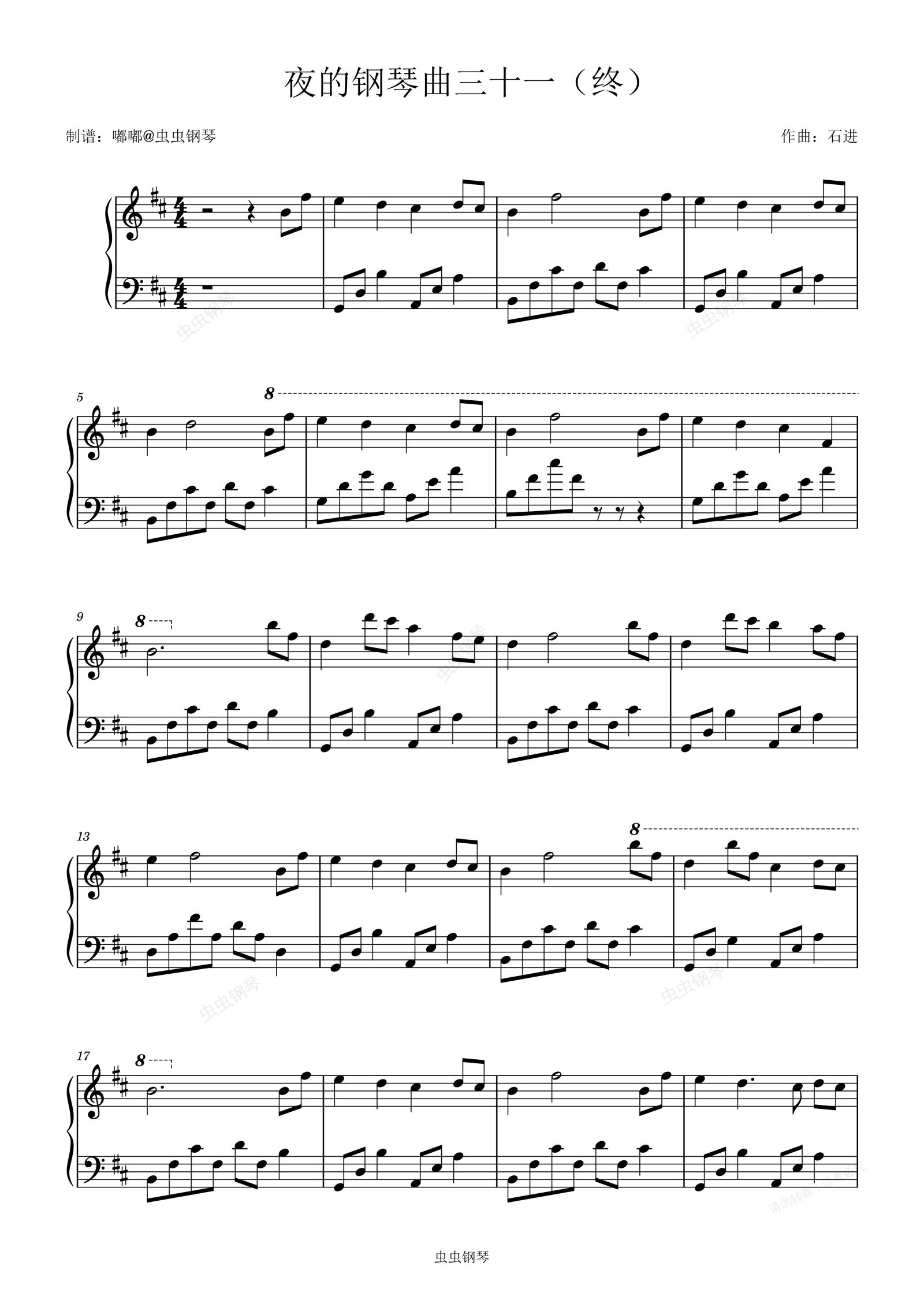 鋼琴譜:夜的鋼琴曲三十一(簡化版)【終】
