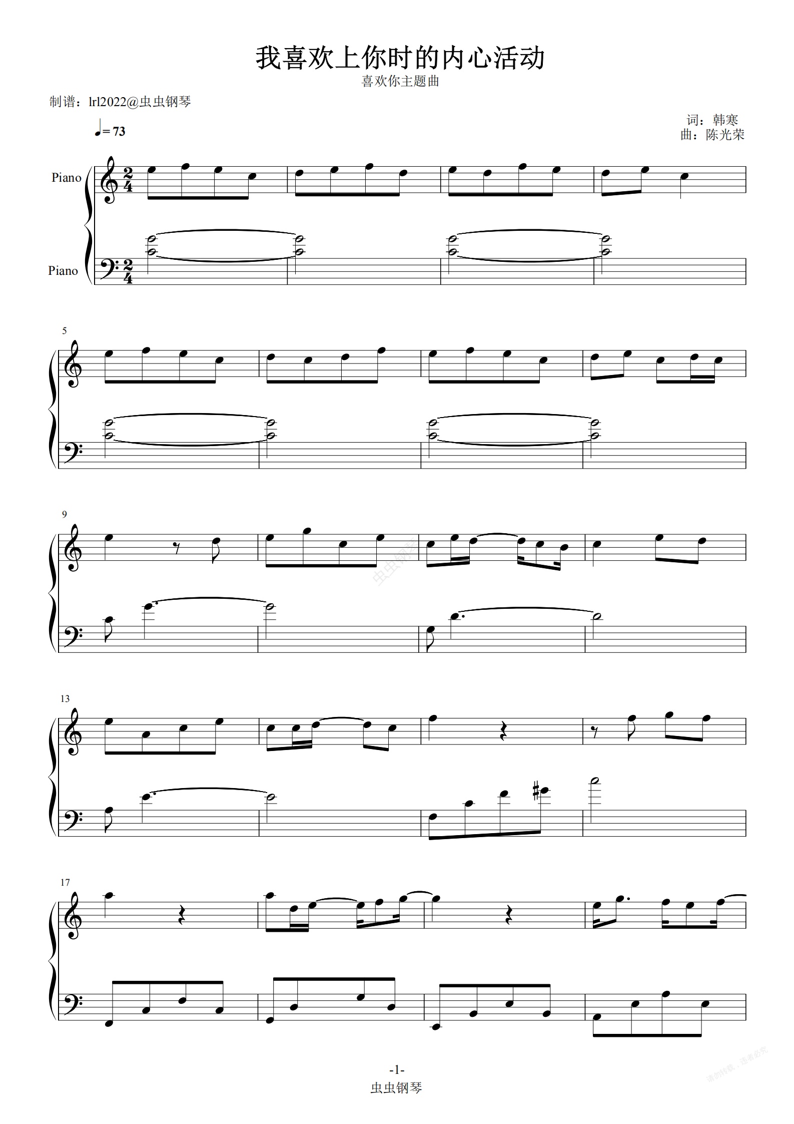 鋼琴譜:我喜歡上你時(shí)的內(nèi)心活動(dòng)-喜歡你主題曲-鋼琴譜-獨(dú)奏版