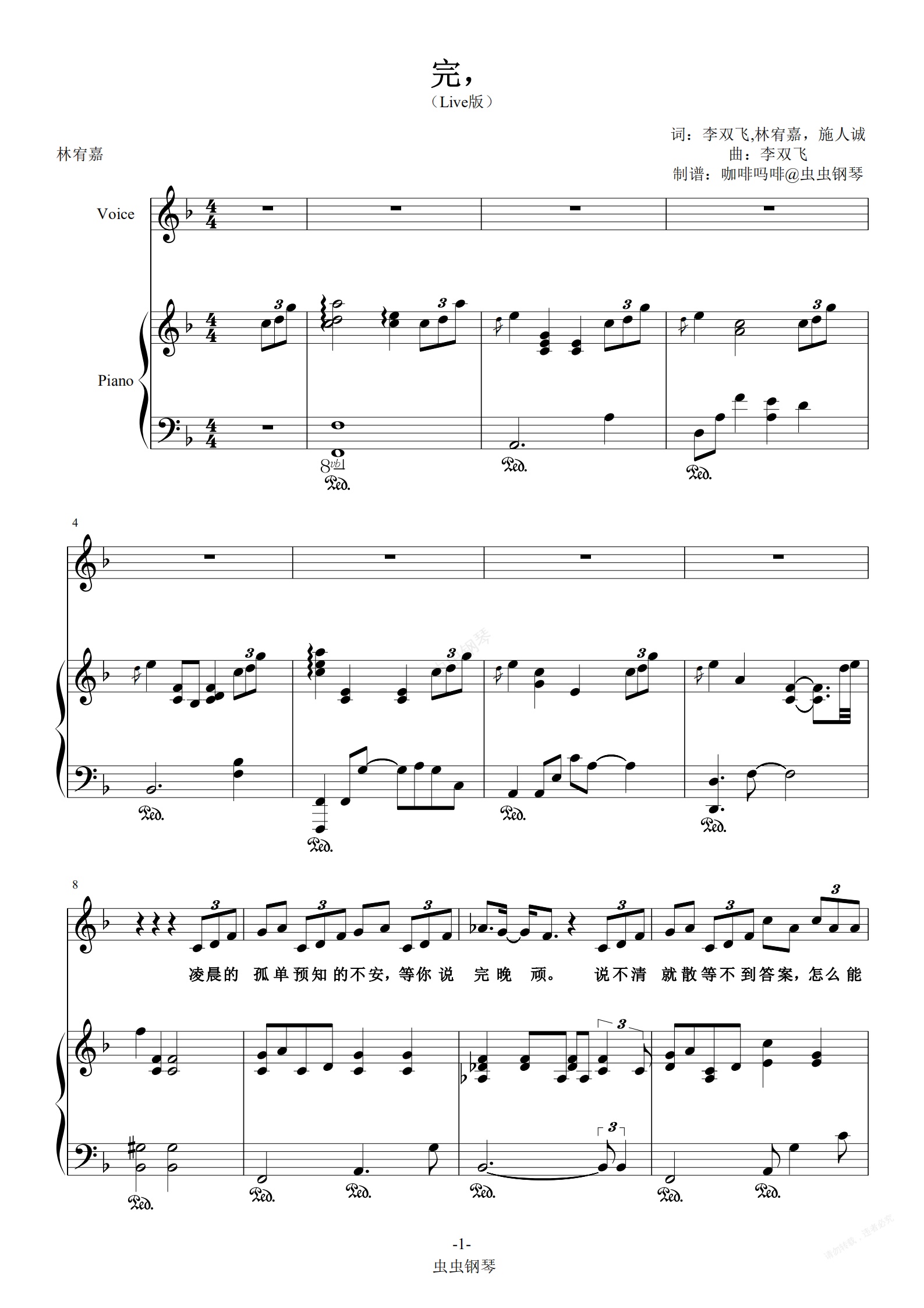 鋼琴譜:完,(Live版)-林宥嘉 F調伴奏譜