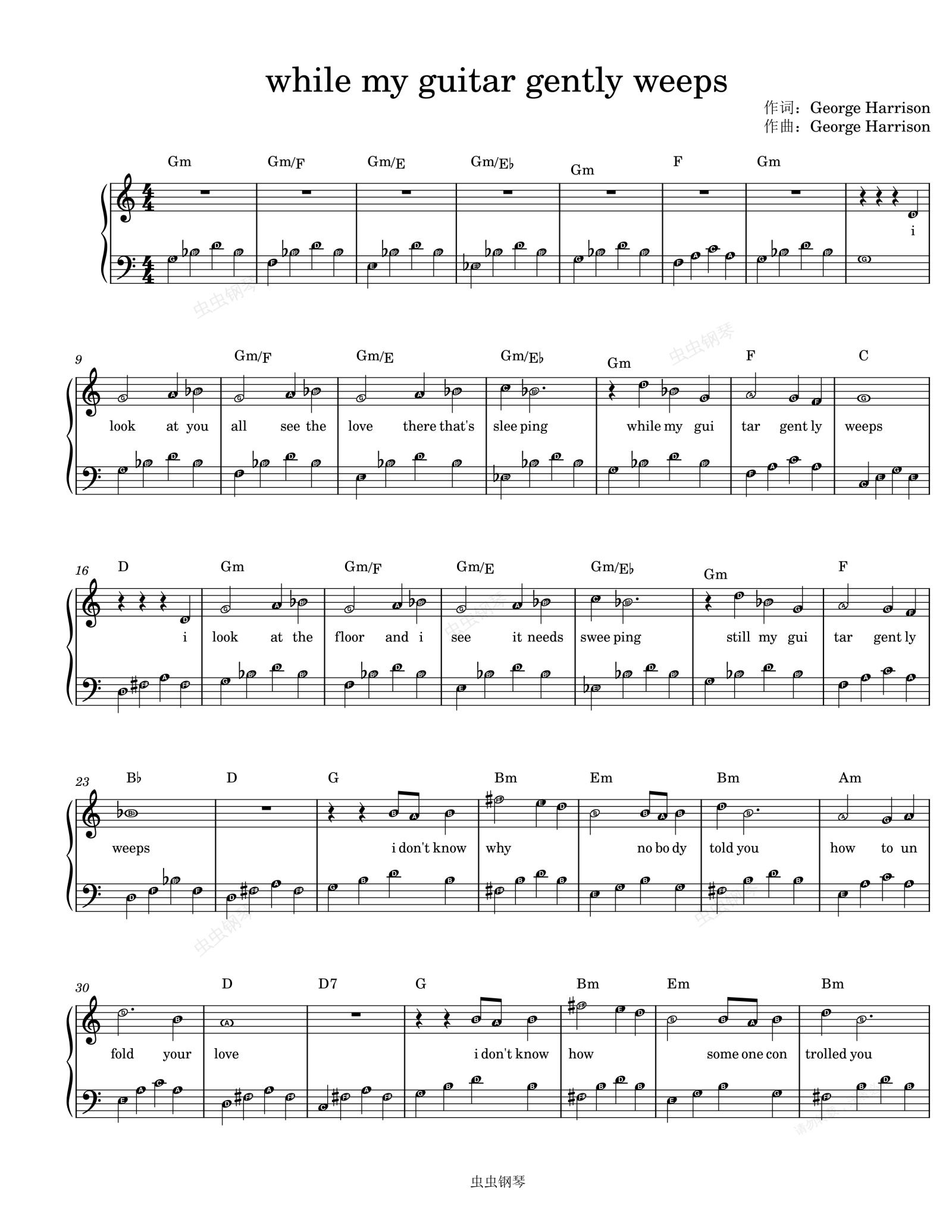 您的位置: 首頁 > 鋼琴譜庫 > While My Guitar Gently Weeps鋼琴譜-The Beatles