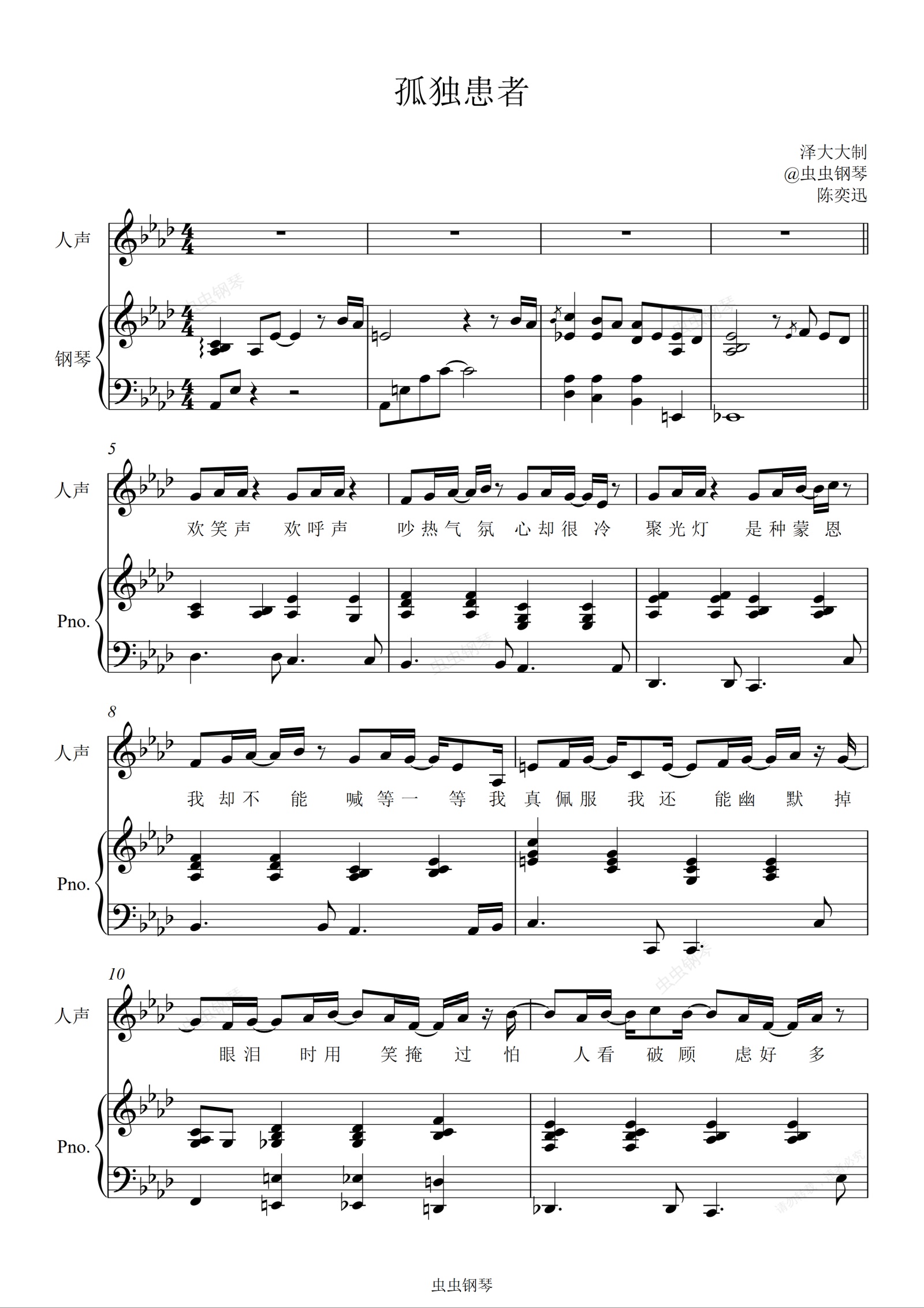 鋼琴譜:孤獨(dú)患者【原版彈唱附詞】陳奕迅 方大同