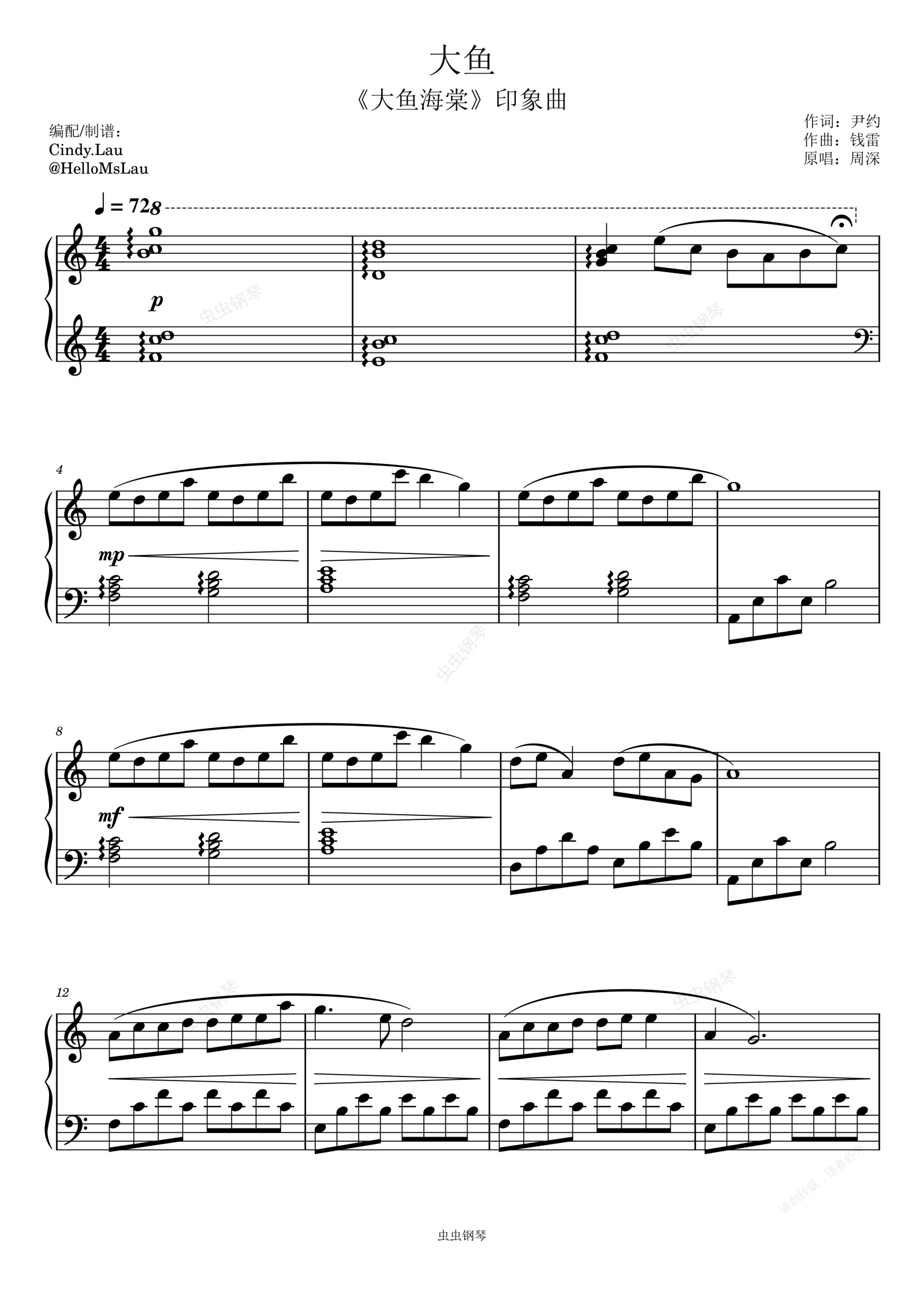 鋼琴譜:大魚——《大魚海棠》印象曲【C調簡易版】