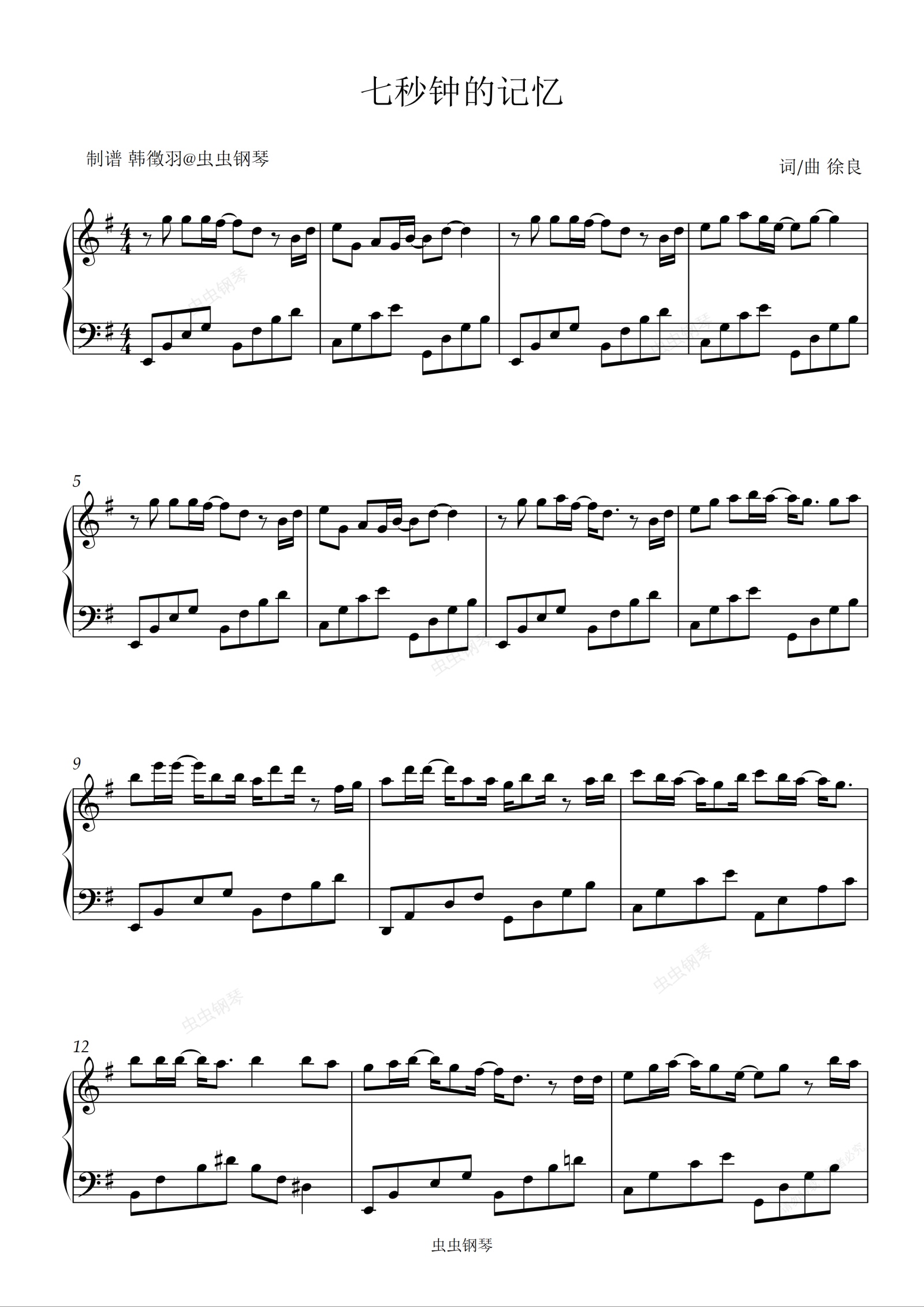 鋼琴譜:七秒鐘的記憶 徐良 簡單易彈