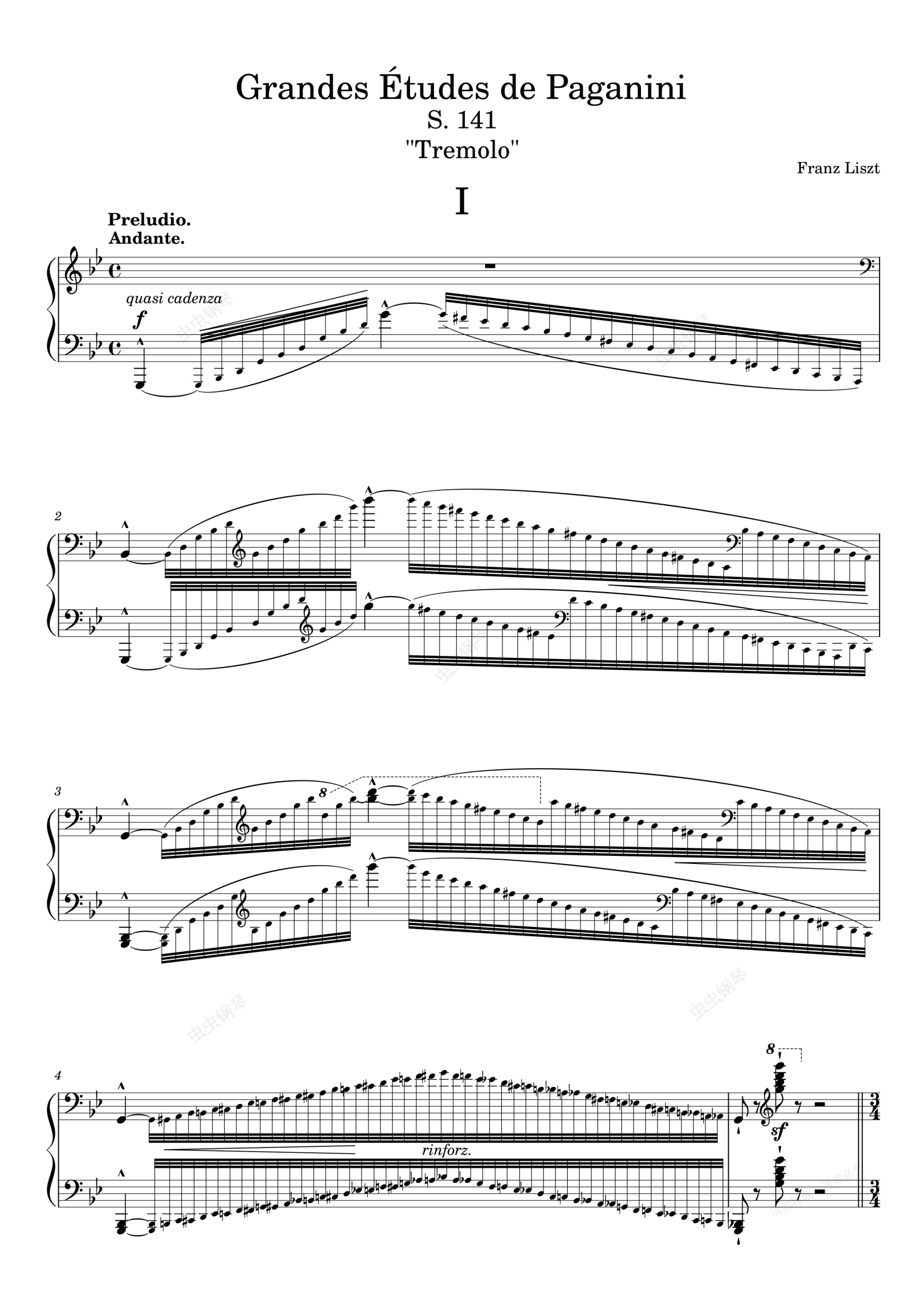 鋼琴譜:Grandes études de Paganini No. 1 Tremolo