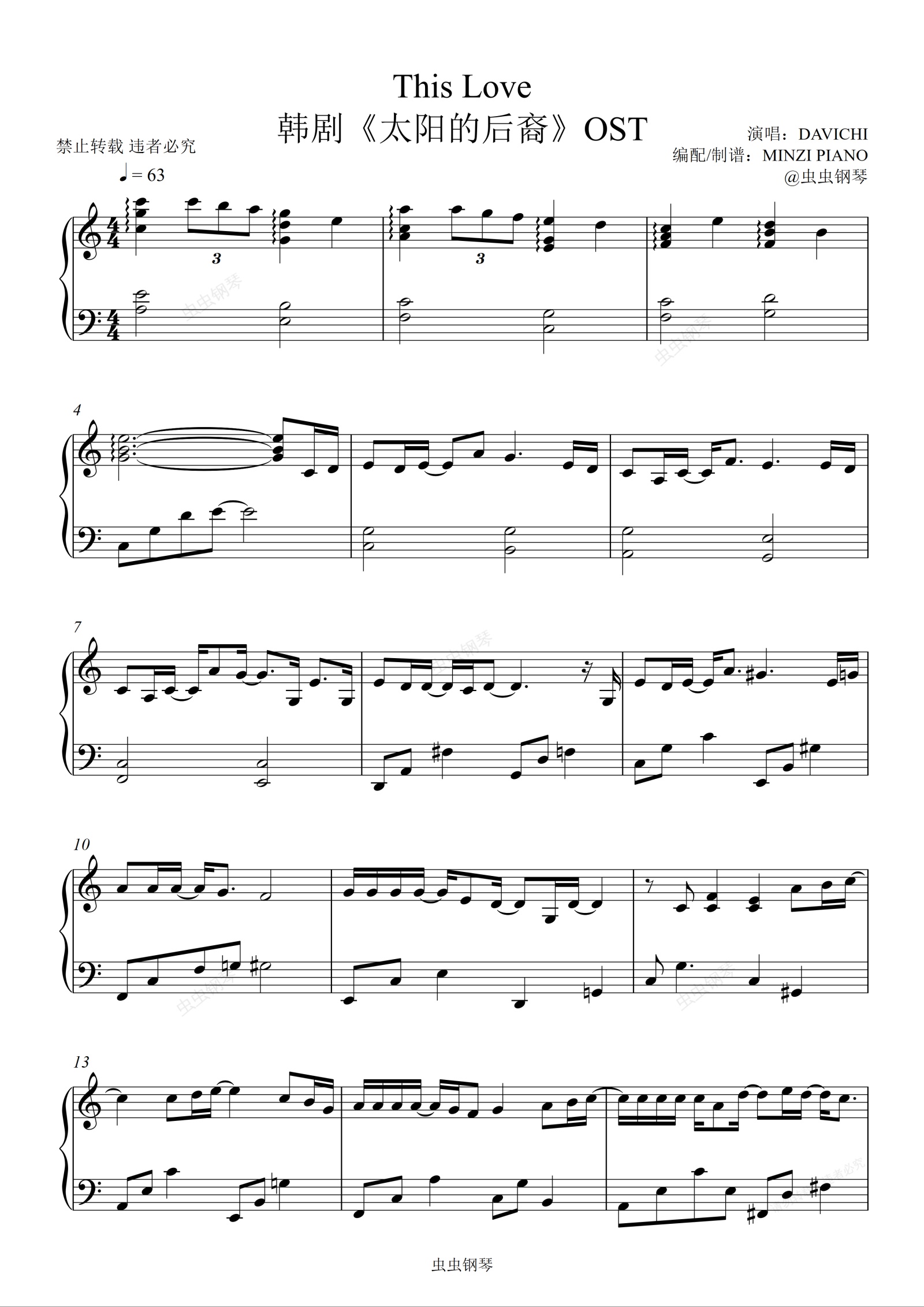 鋼琴譜:太陽(yáng)的后裔OST《This Love》DAVICHI