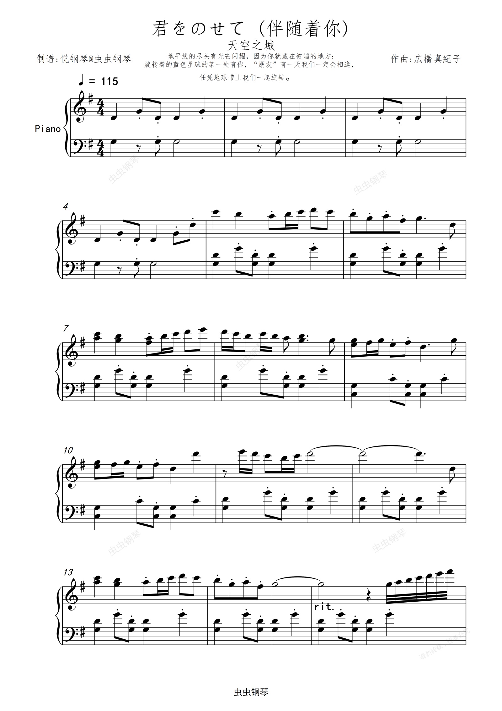 鋼琴譜:君をのせて (伴隨著你) [天空之城] 広橋真紀子