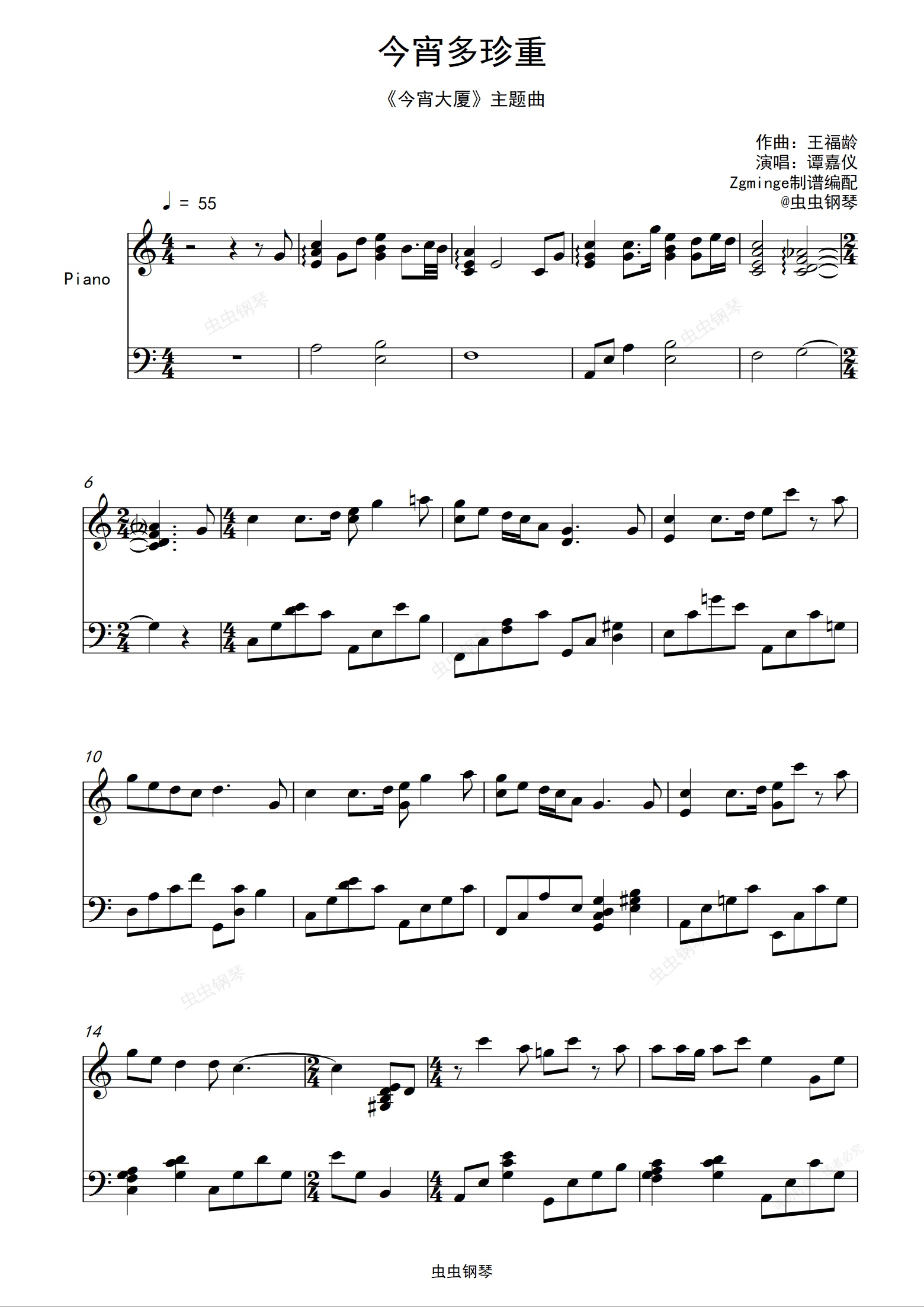 鋼琴譜:今宵多珍重 《今宵大廈》主題曲 精編完整版