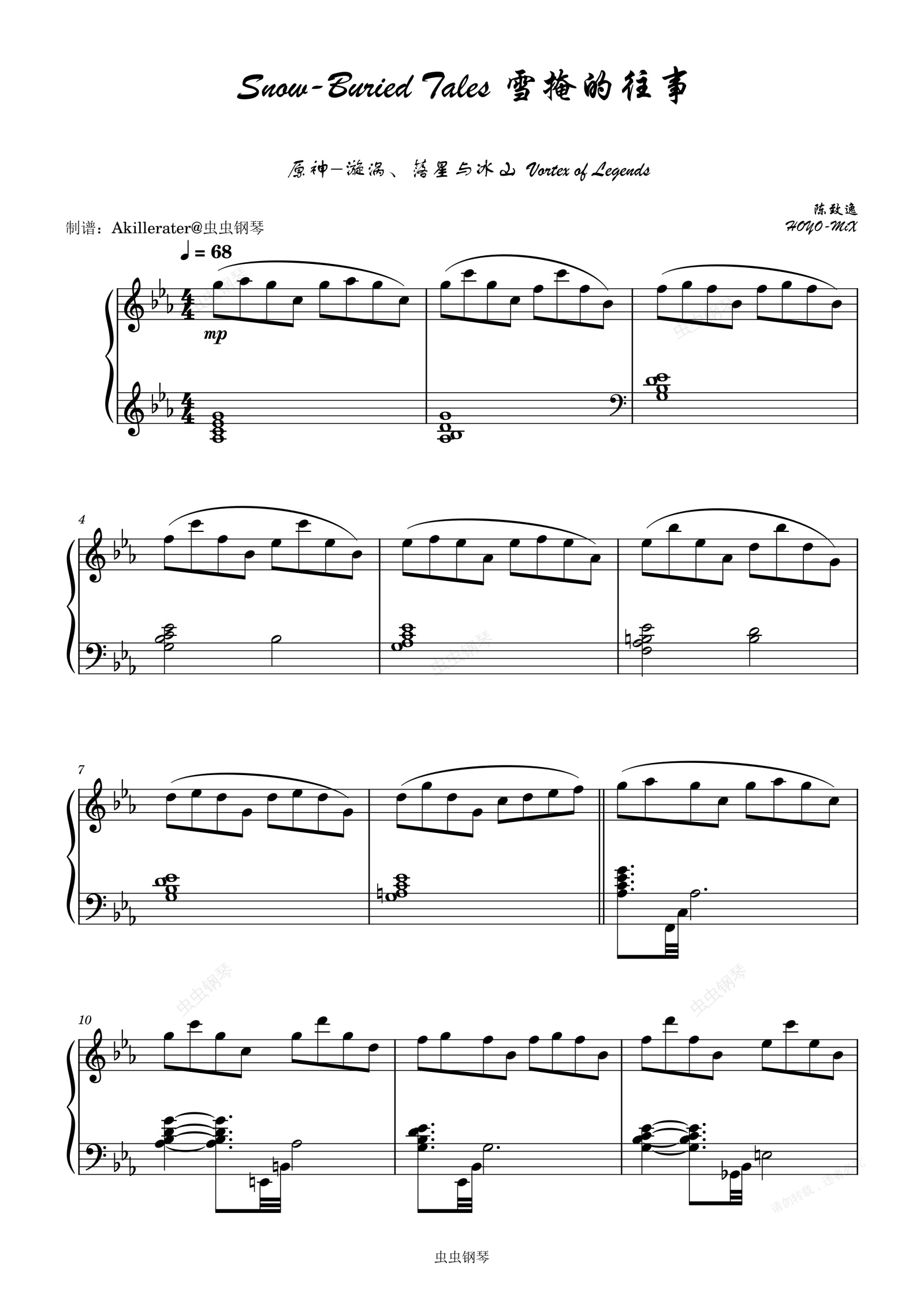 鋼琴譜:Snow-Buried Tales 雪掩的往事《原神-漩渦、落星與冰山 Vortex of Legends》