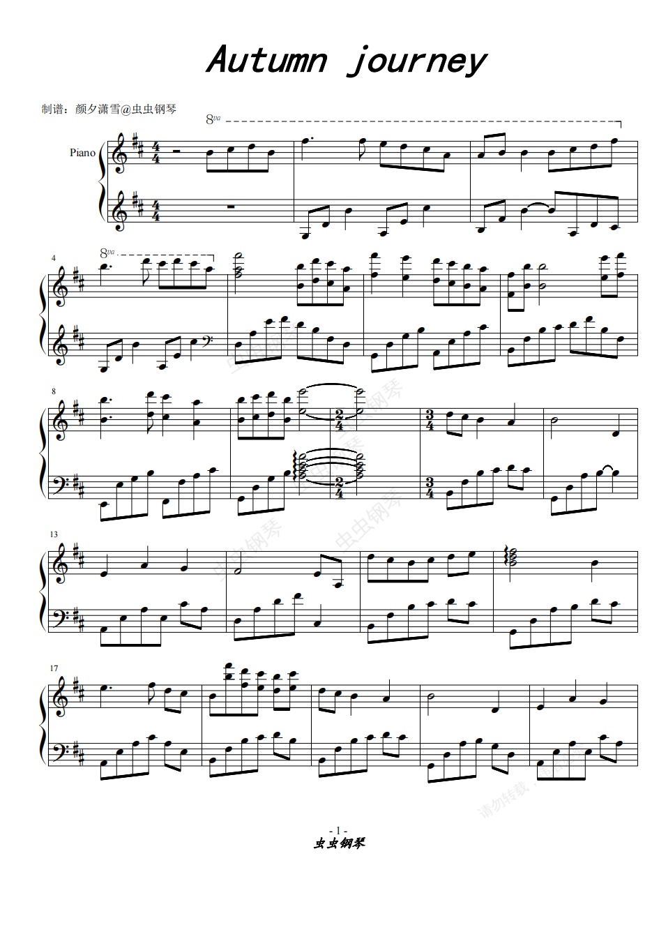 鋼琴譜:【Autumn journey】獨奏曲-Eric Chiryoku