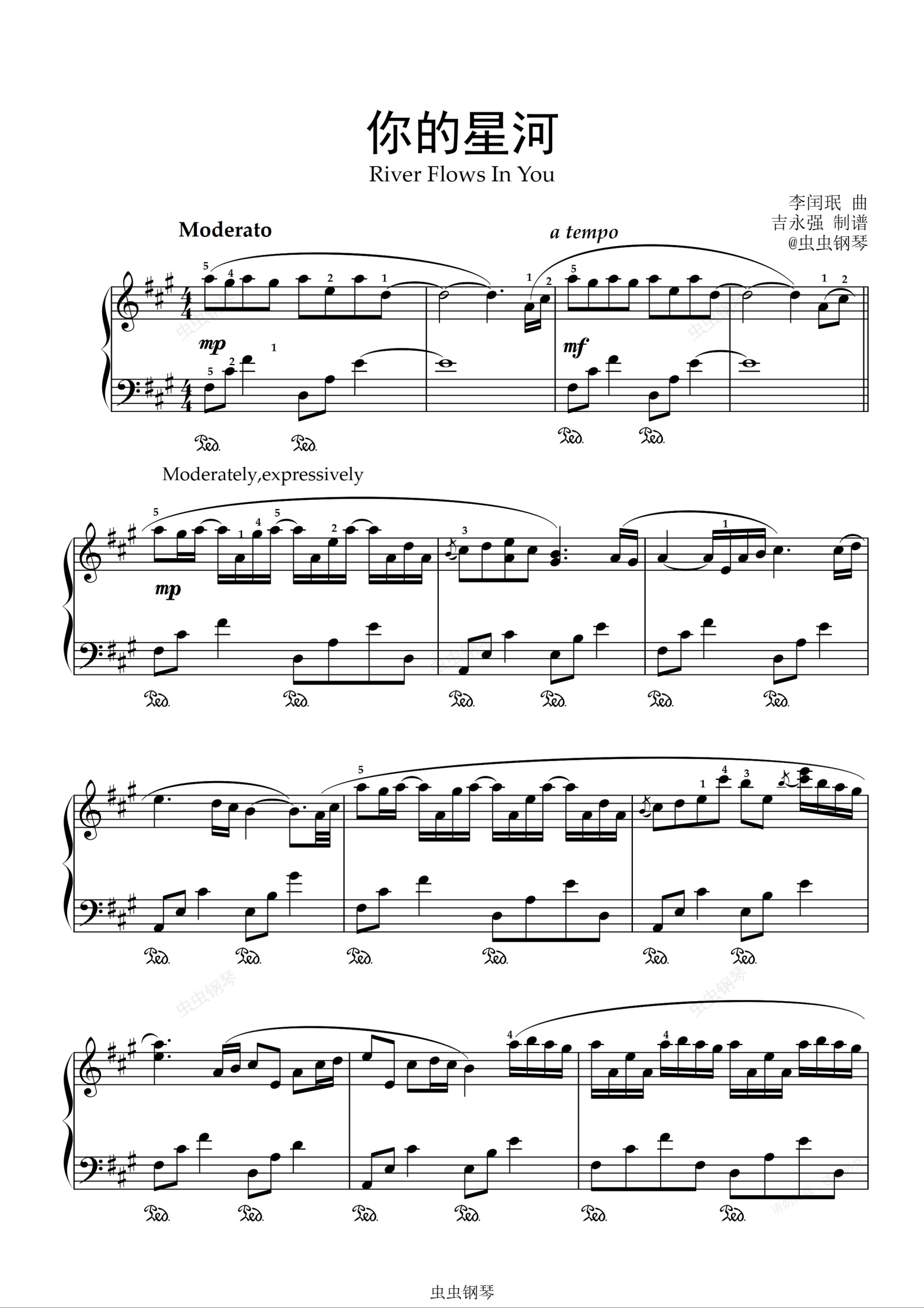 鋼琴譜:River Flows In You 教學規范版