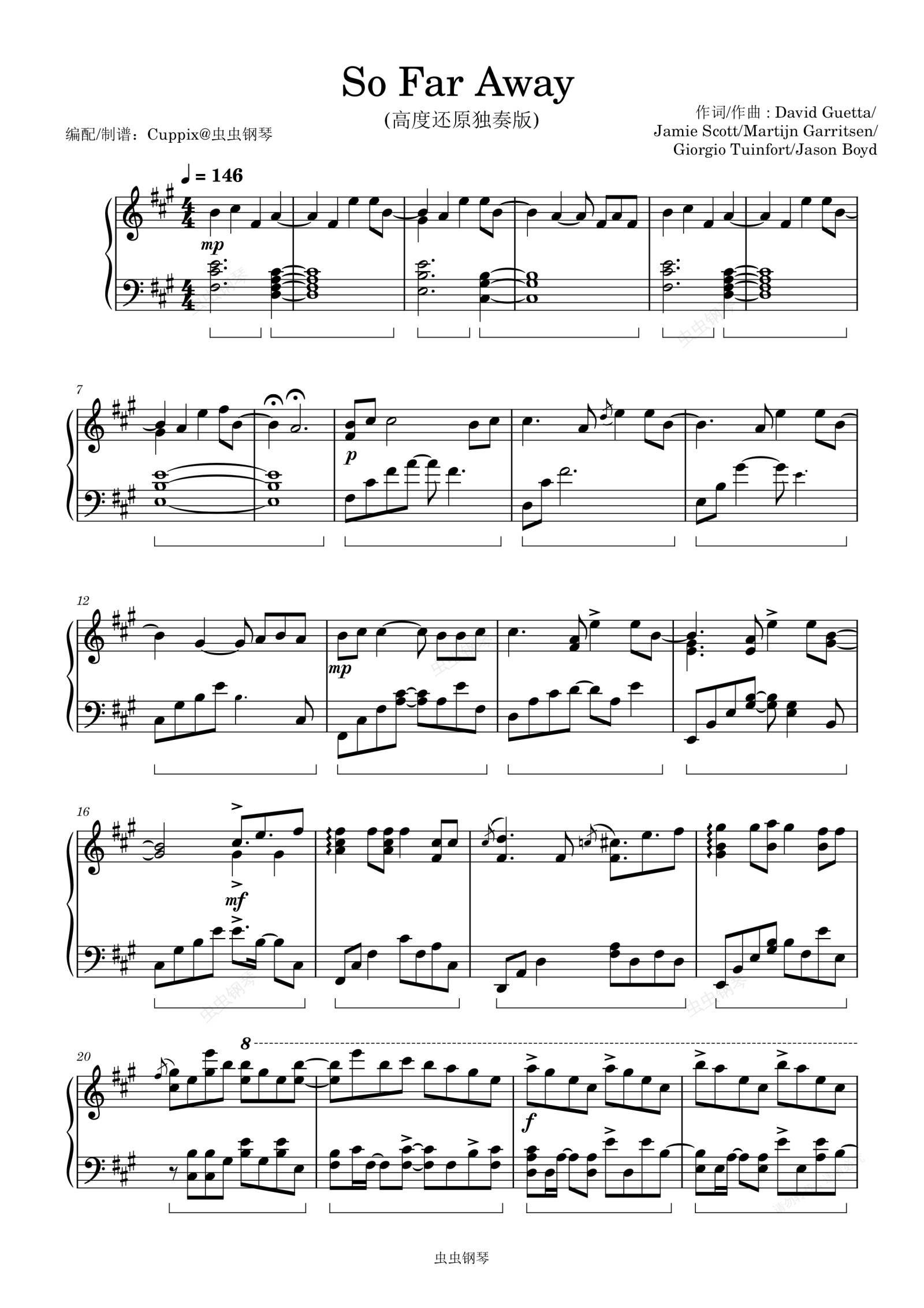 鋼琴譜:《So Far Away》Cuppix編配(Martin Garrix、David Guetta、Jamie Scott、Romy Dya)