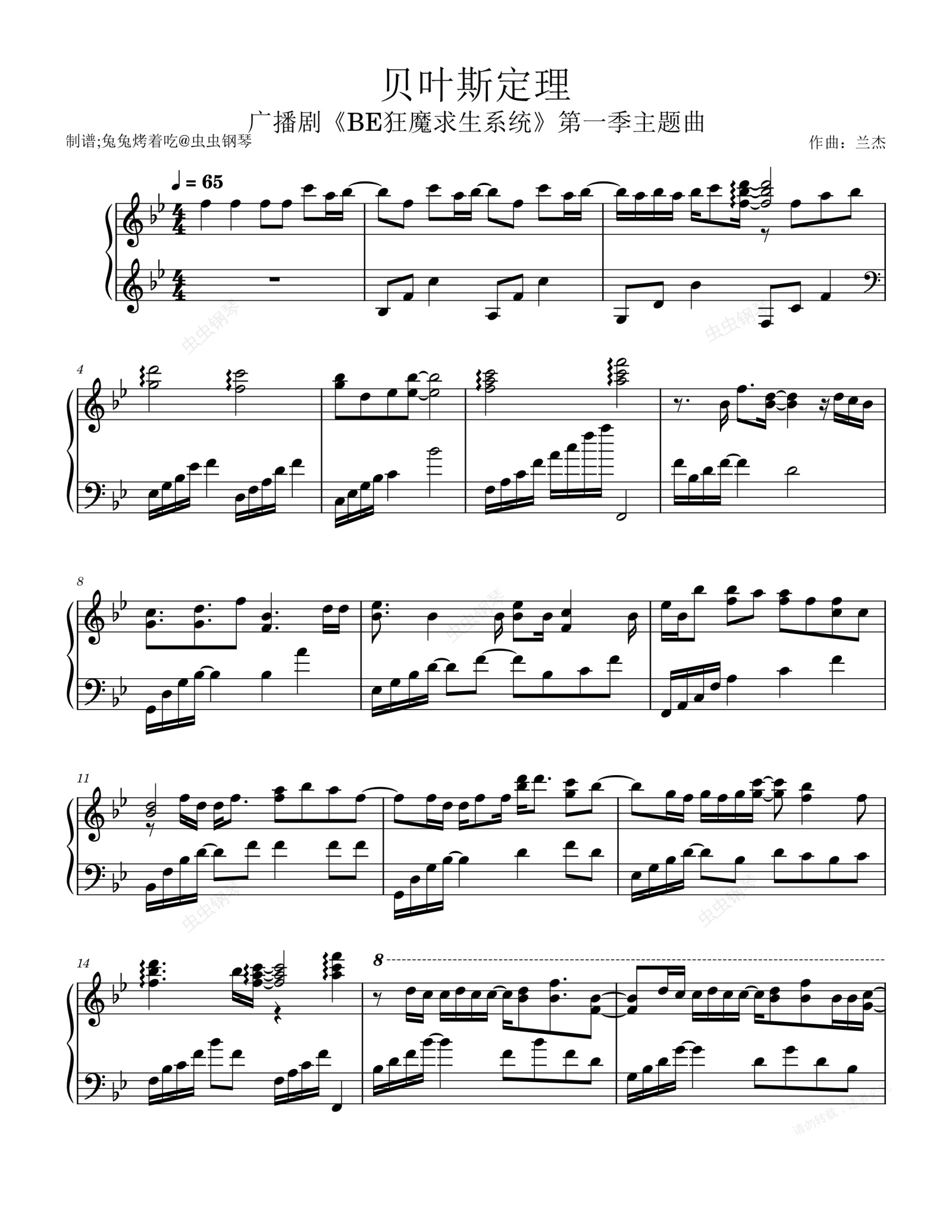鋼琴譜:《貝葉斯定理》【BE狂魔求生系統】廣播劇第一季主題曲