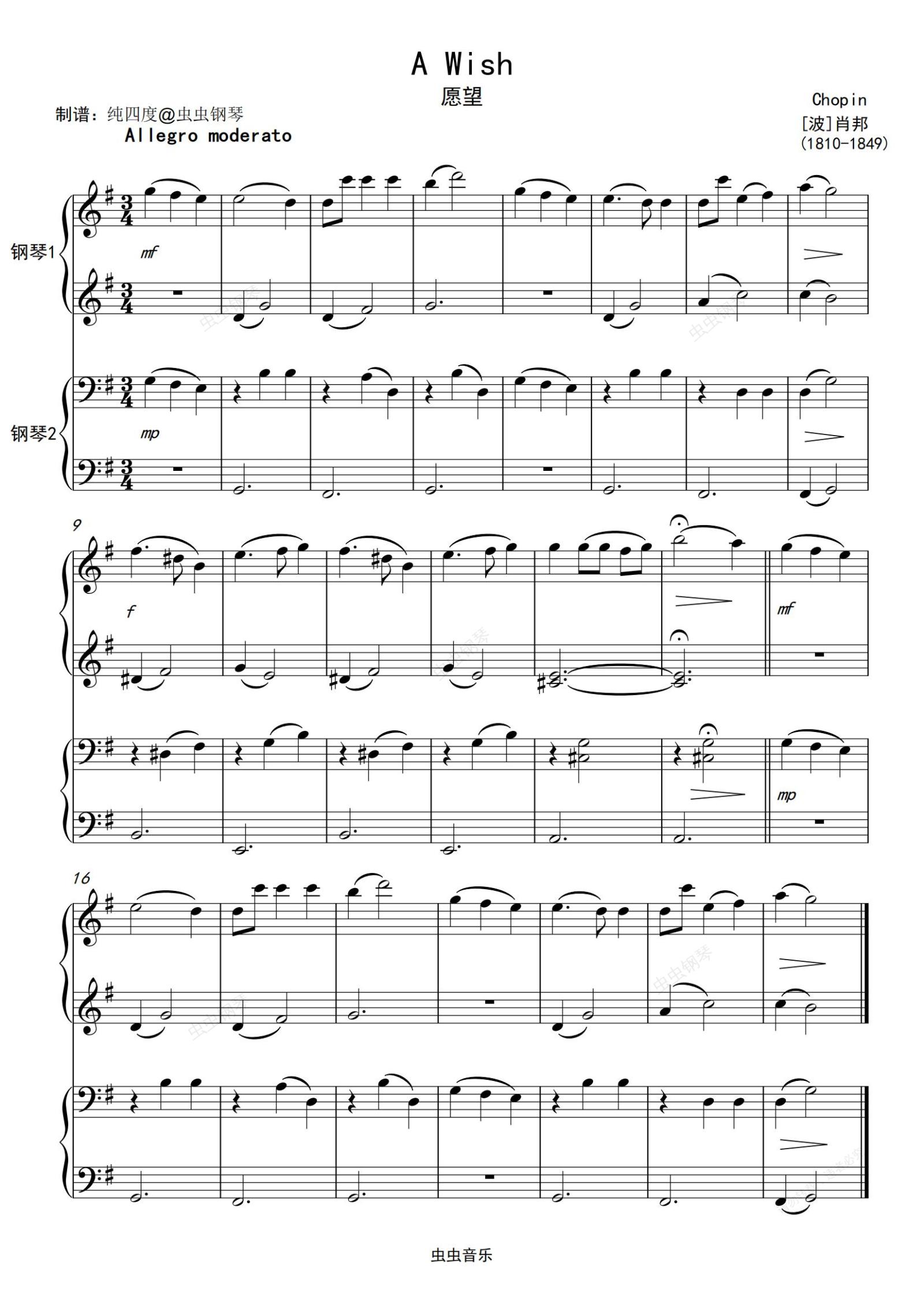 鋼琴譜:肖邦《愿望》A Wish 四手聯彈
