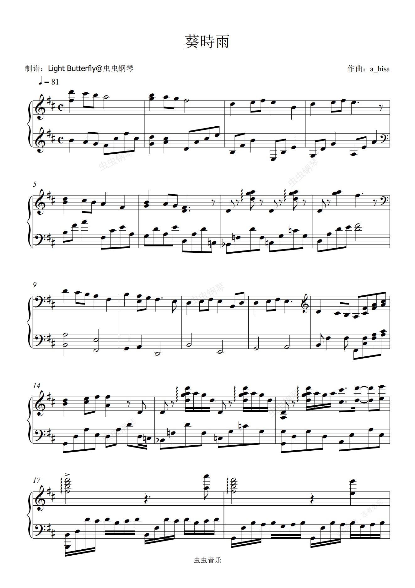 鋼琴譜:葵時(shí)雨 - a_hisa