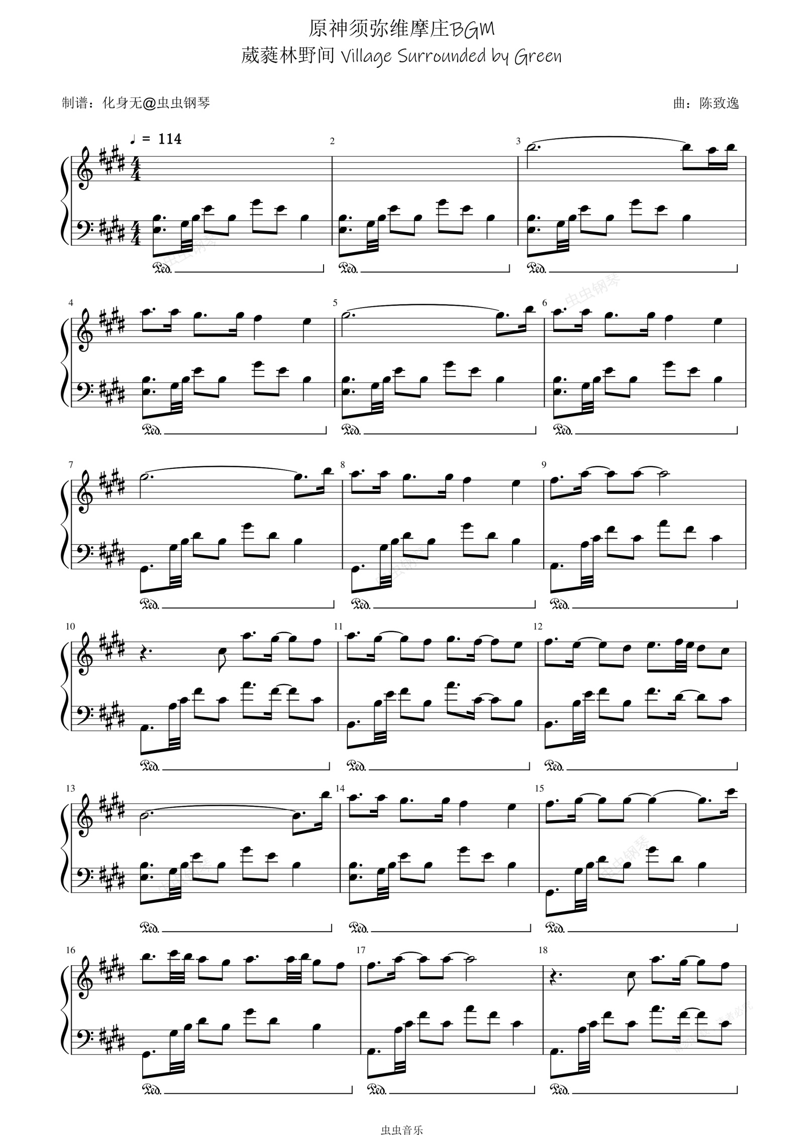 鋼琴譜:原神須彌維摩莊BGM 葳蕤林野間 Village Surrounded by Green