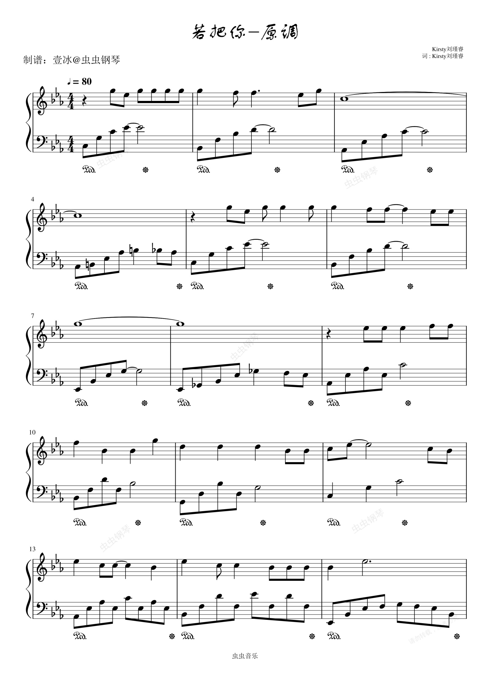 鋼琴譜:若把你//Kirsty劉瑾睿-原調版 簡單易上手