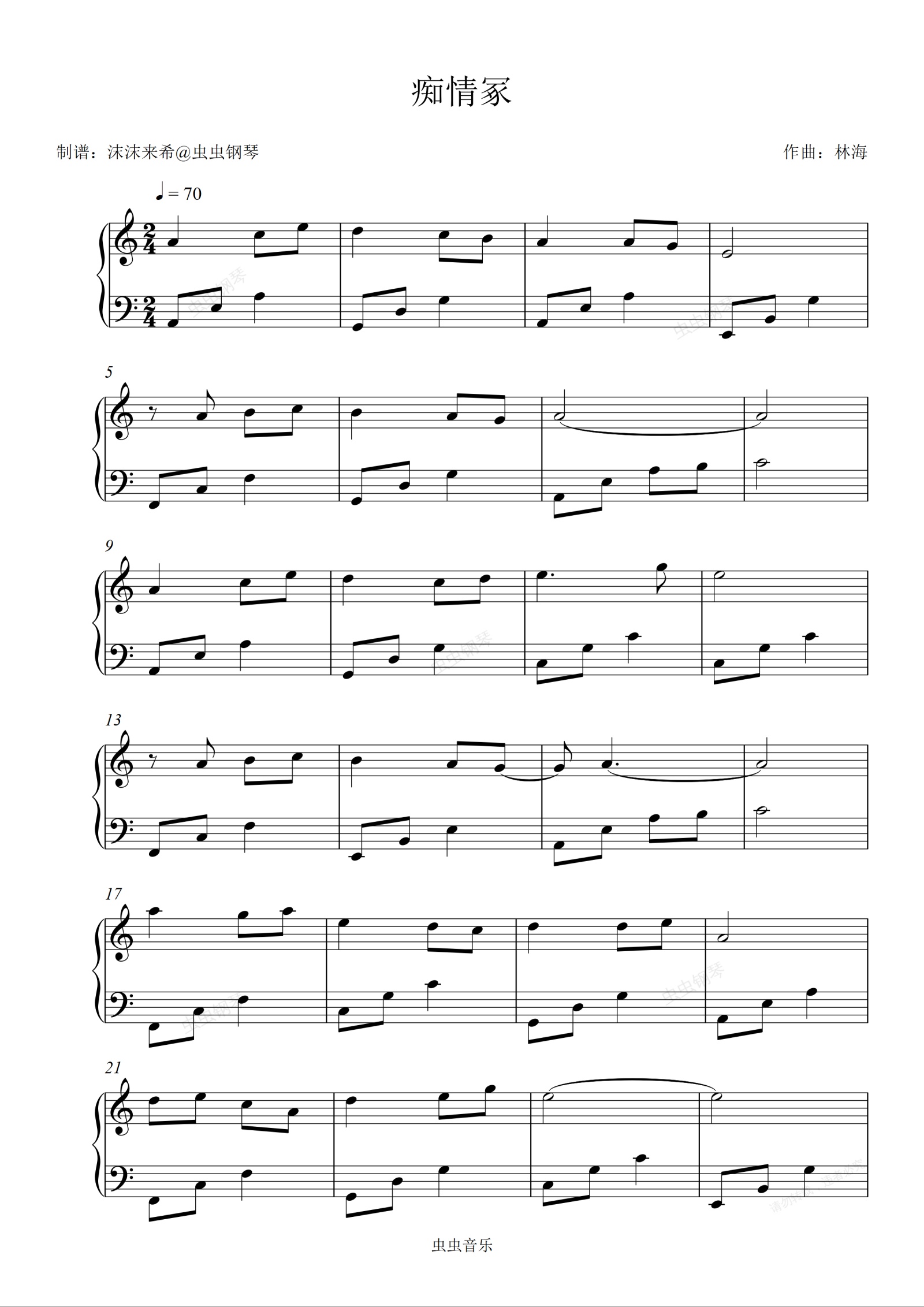 鋼琴譜:《癡情冢》C調 初學者 超級簡單