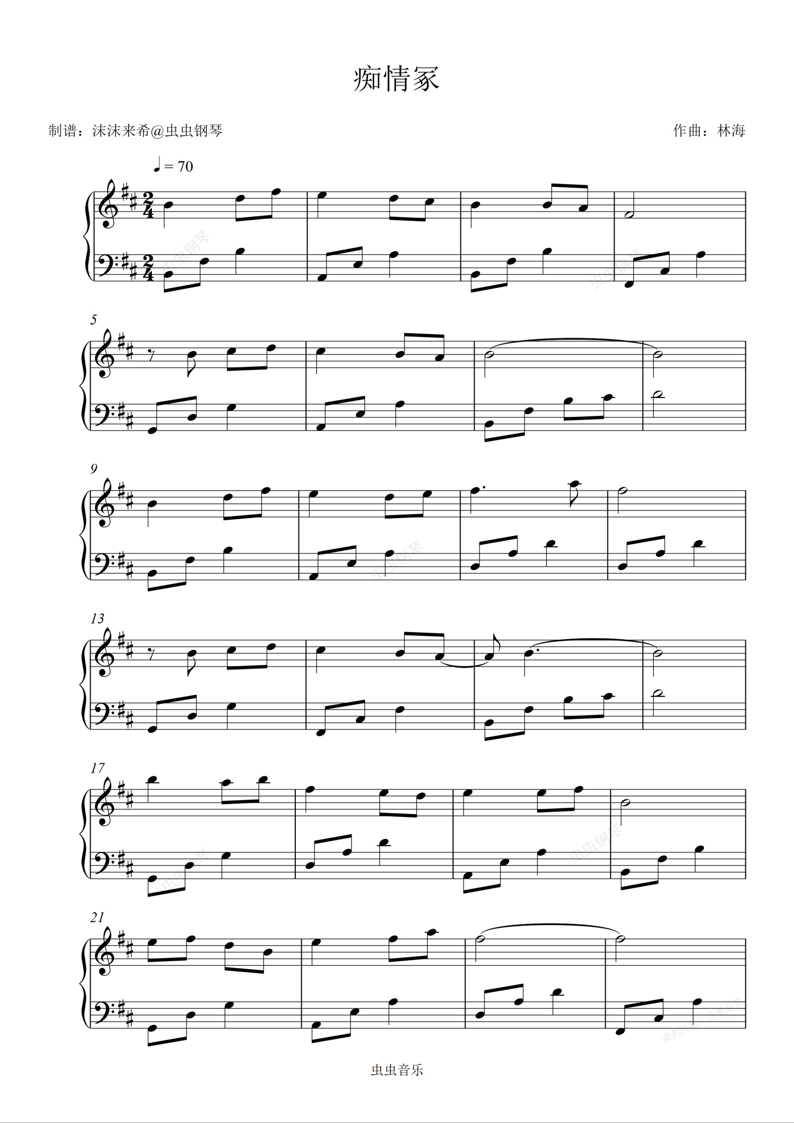 鋼琴譜:《癡情冢》D調 初學者 簡單