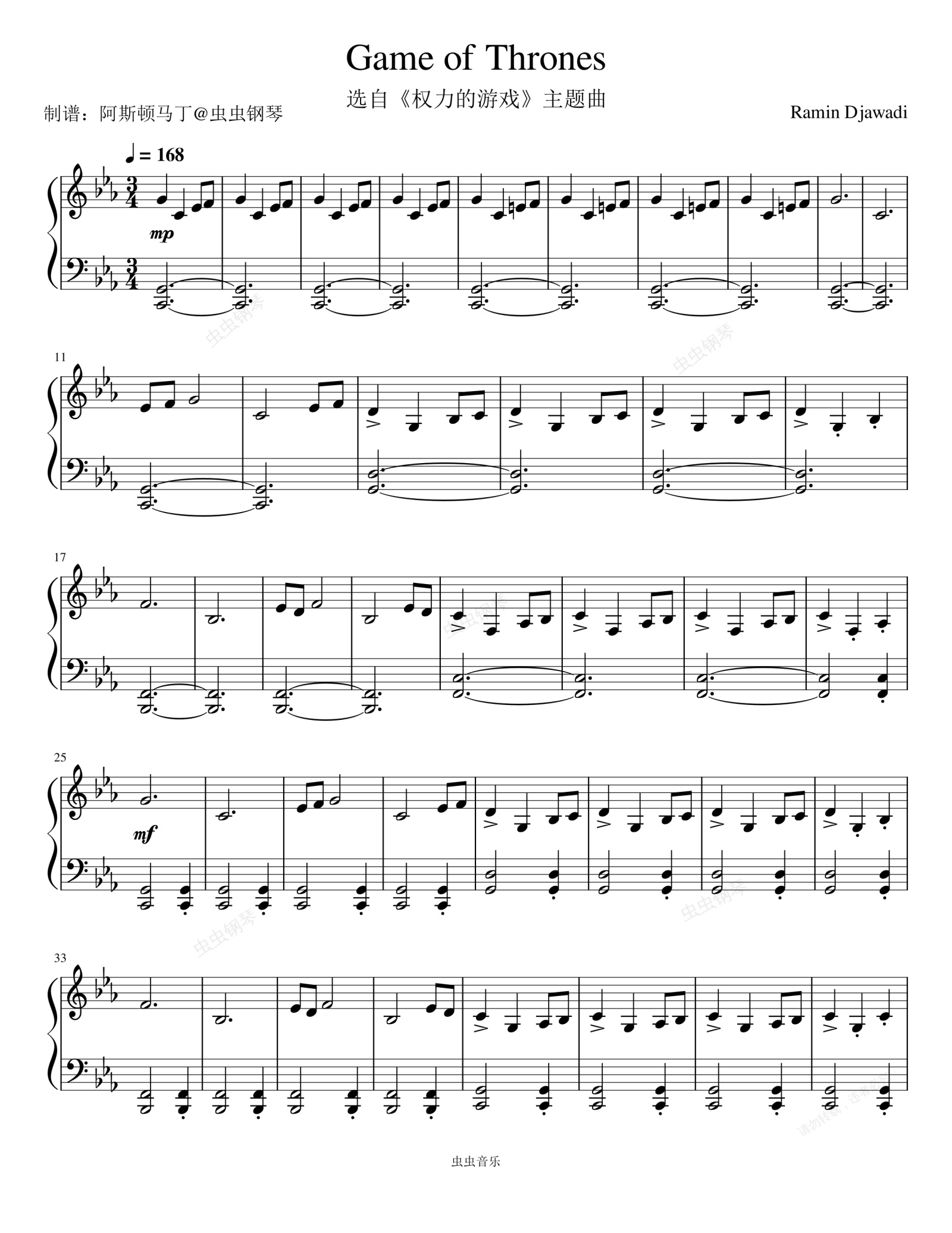 鋼琴譜:權(quán)利的游戲-Game of Thrones【初學(xué)簡易版】
