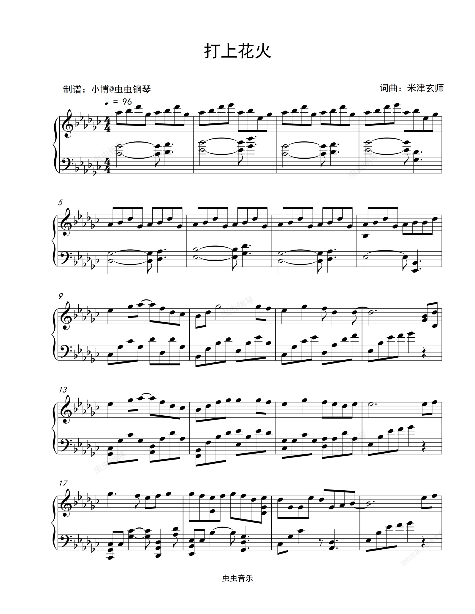 鋼琴譜:打上花火-米津玄師 DAOKO-完整版