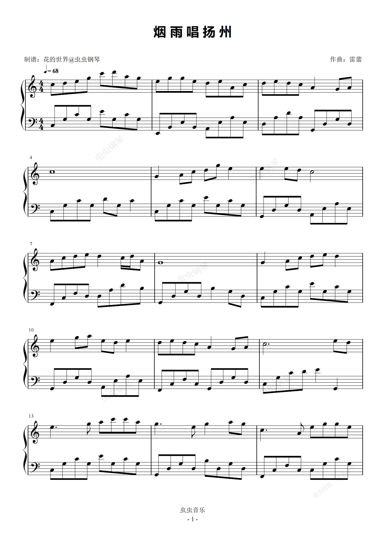 鋼琴譜:煙雨唱揚州 C調簡易版 李殊